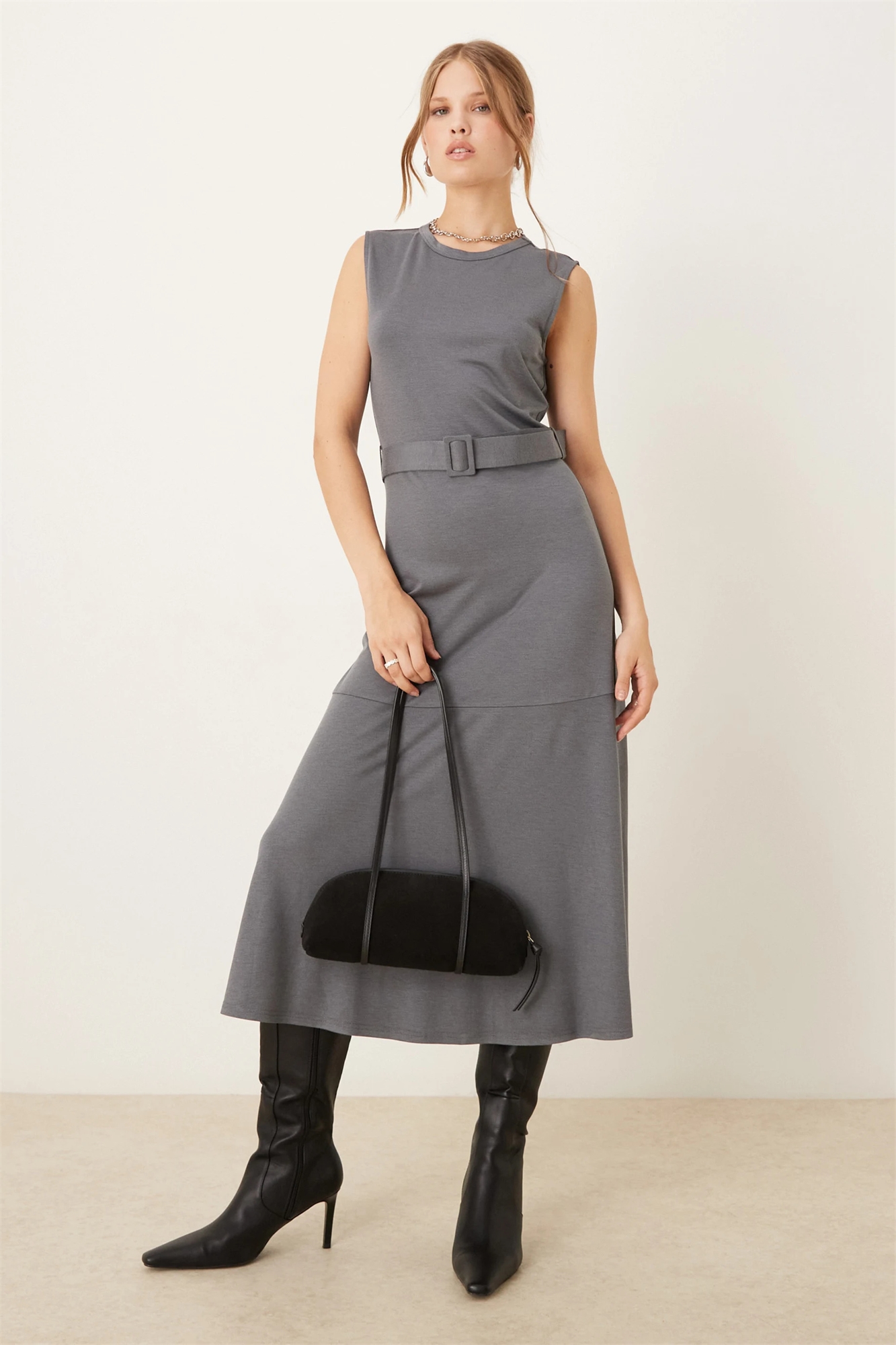 Платье средней длины из тонкого трикотажа с поясом