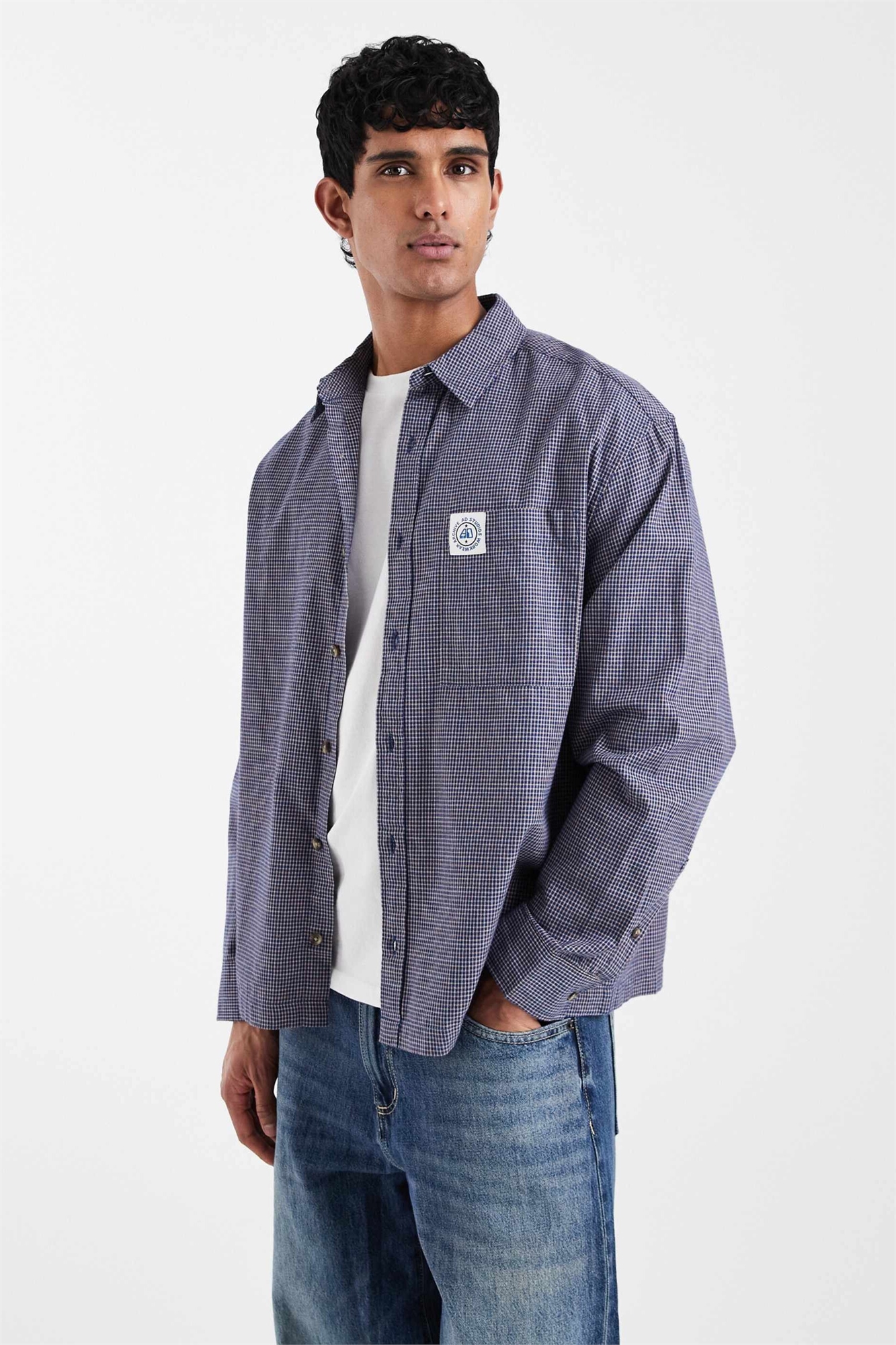 Рубашка в клетку свободного кроя с нашивкой на груди