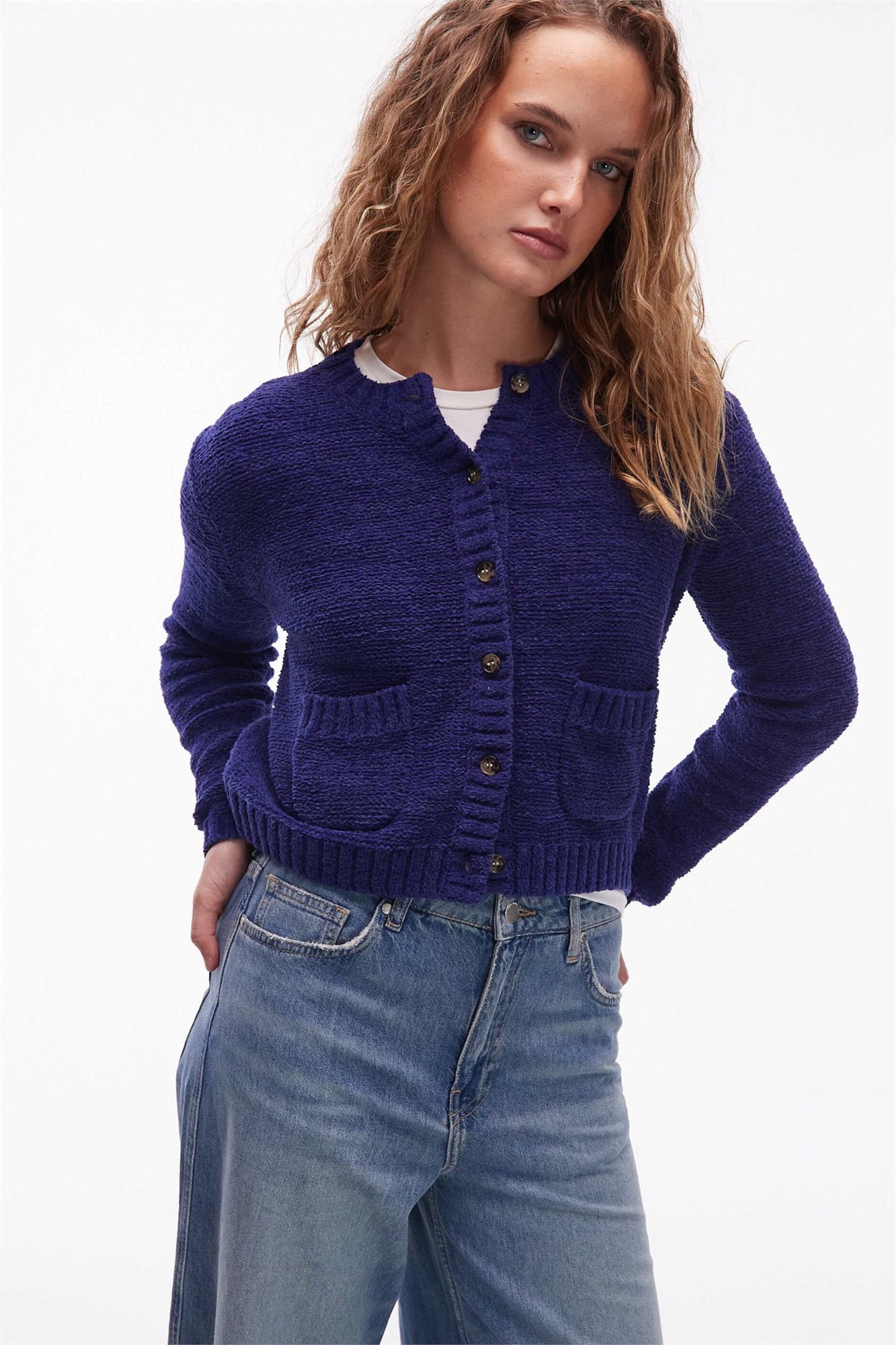 Кардиган с круглым вырезом из ткани с высоким содержанием хлопка