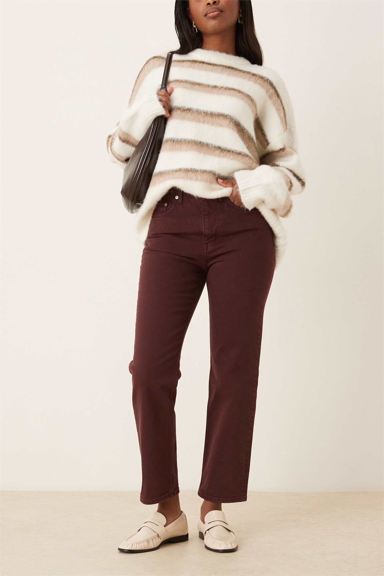 Неэластичный деним: бордовый оттенок Верх: 99% хлопок, 1% эластан.