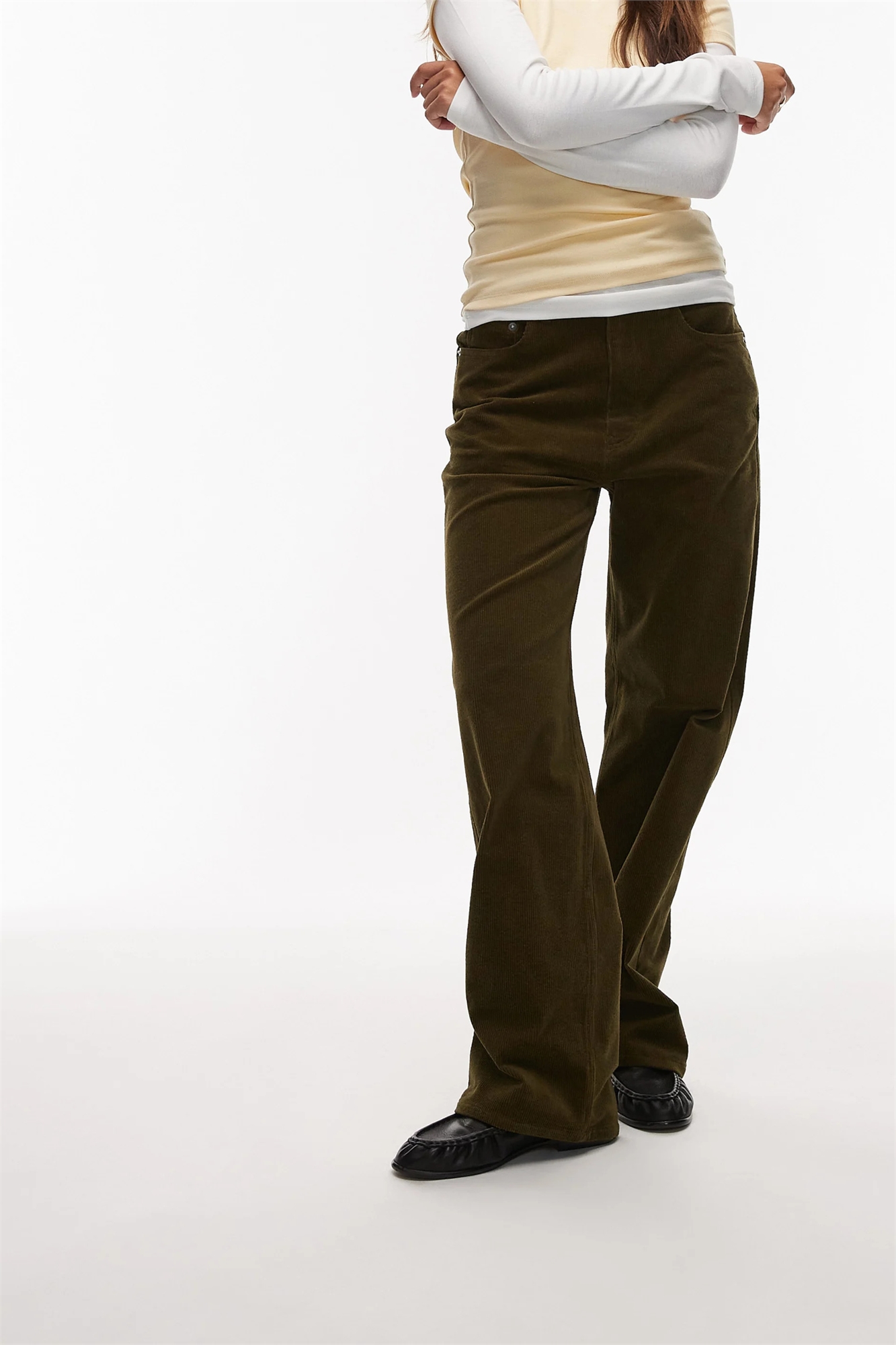 Брюки из эластичного вельвета с низкой посадкой, свободным кроем и широкими брючинами цвета кораллового