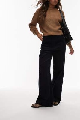 Брюки из вельвета с широкими брючинами и зауженным поясом