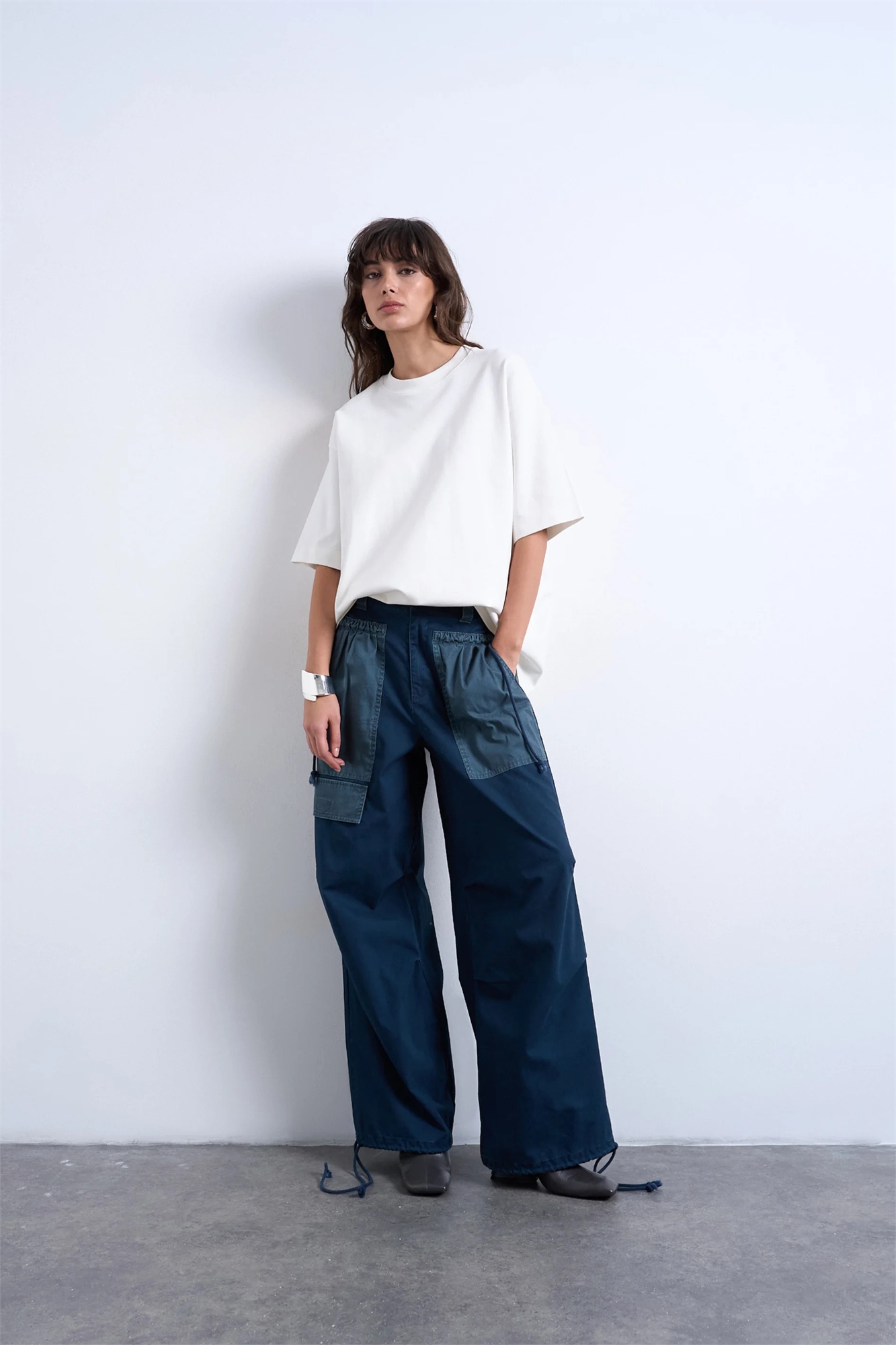 Двухцветные брюки-карго с глубокими карманами