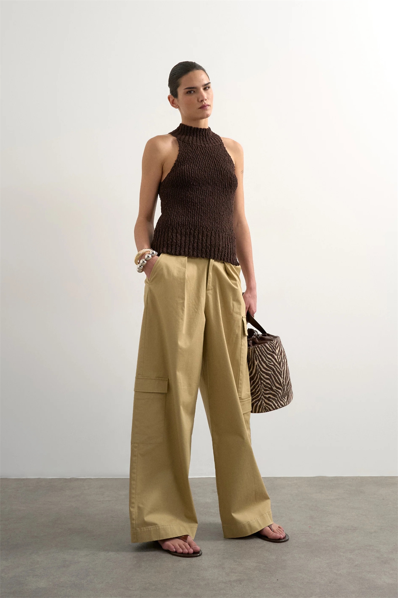 Чистые брюки-карго с широкими брючинами и завязками на талии