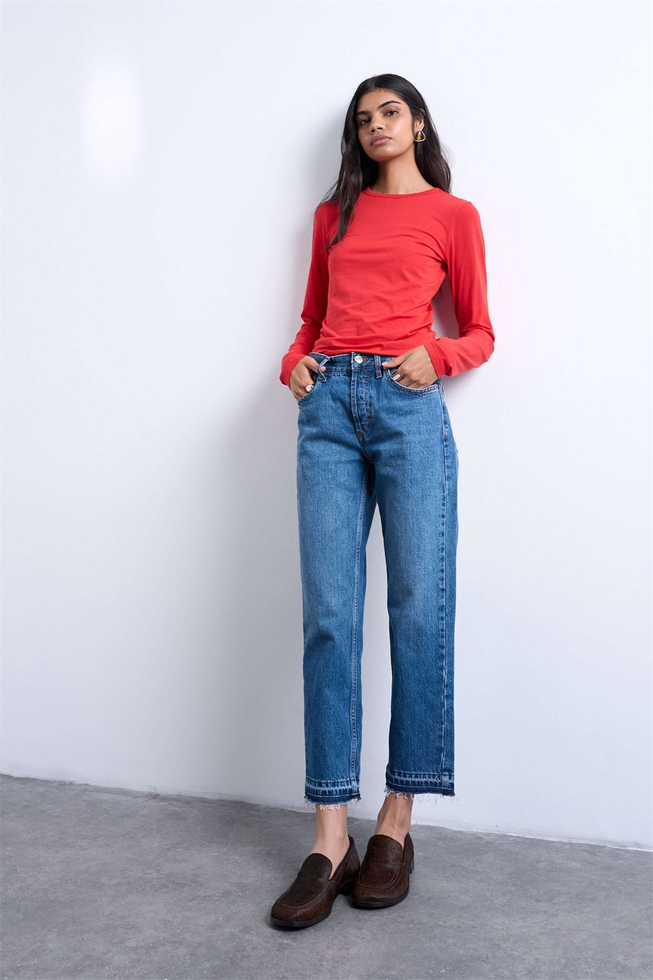 Джинсы средней посадки с прямым кроем и укороченной длиной, с отворотом на подоле