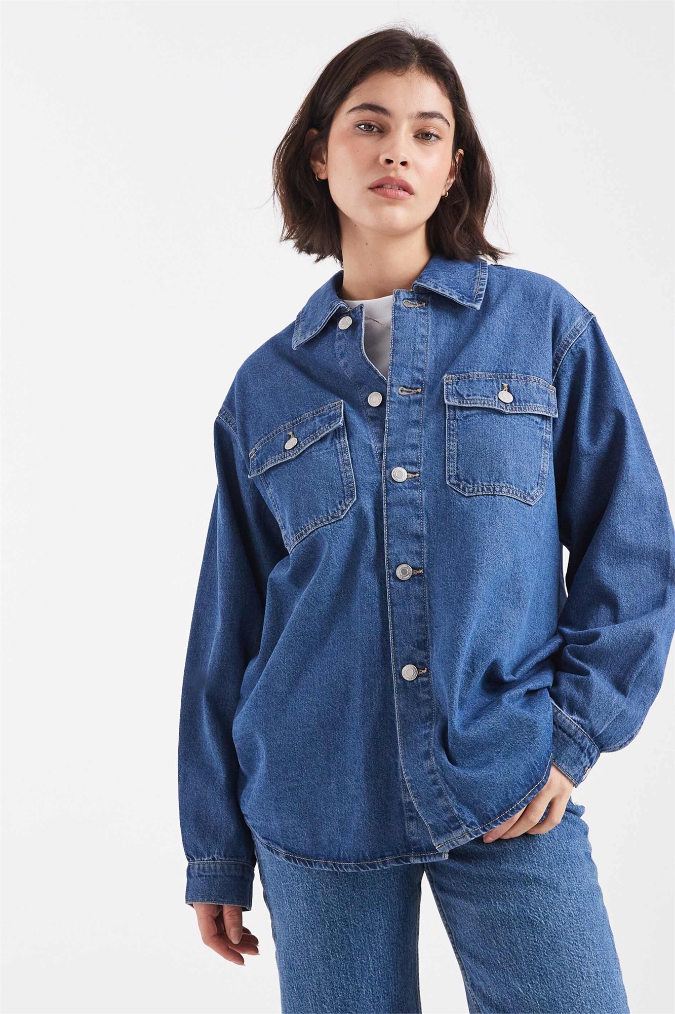 Джинсовая рубашка с объемными карманами