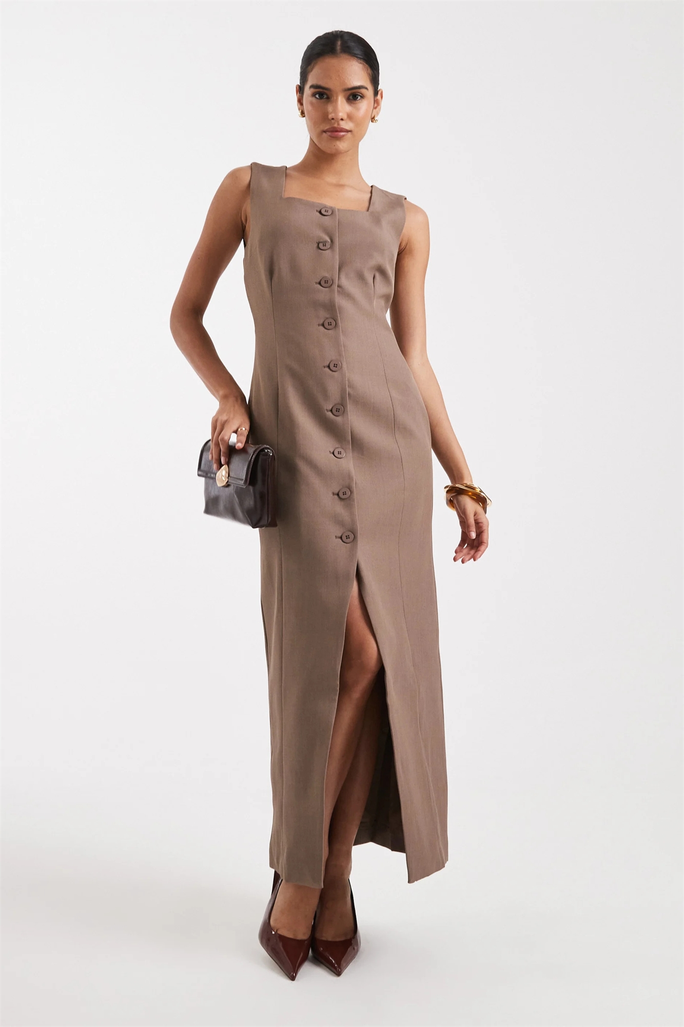 Платье средней длины с квадратным вырезом и застежкой на пуговицах