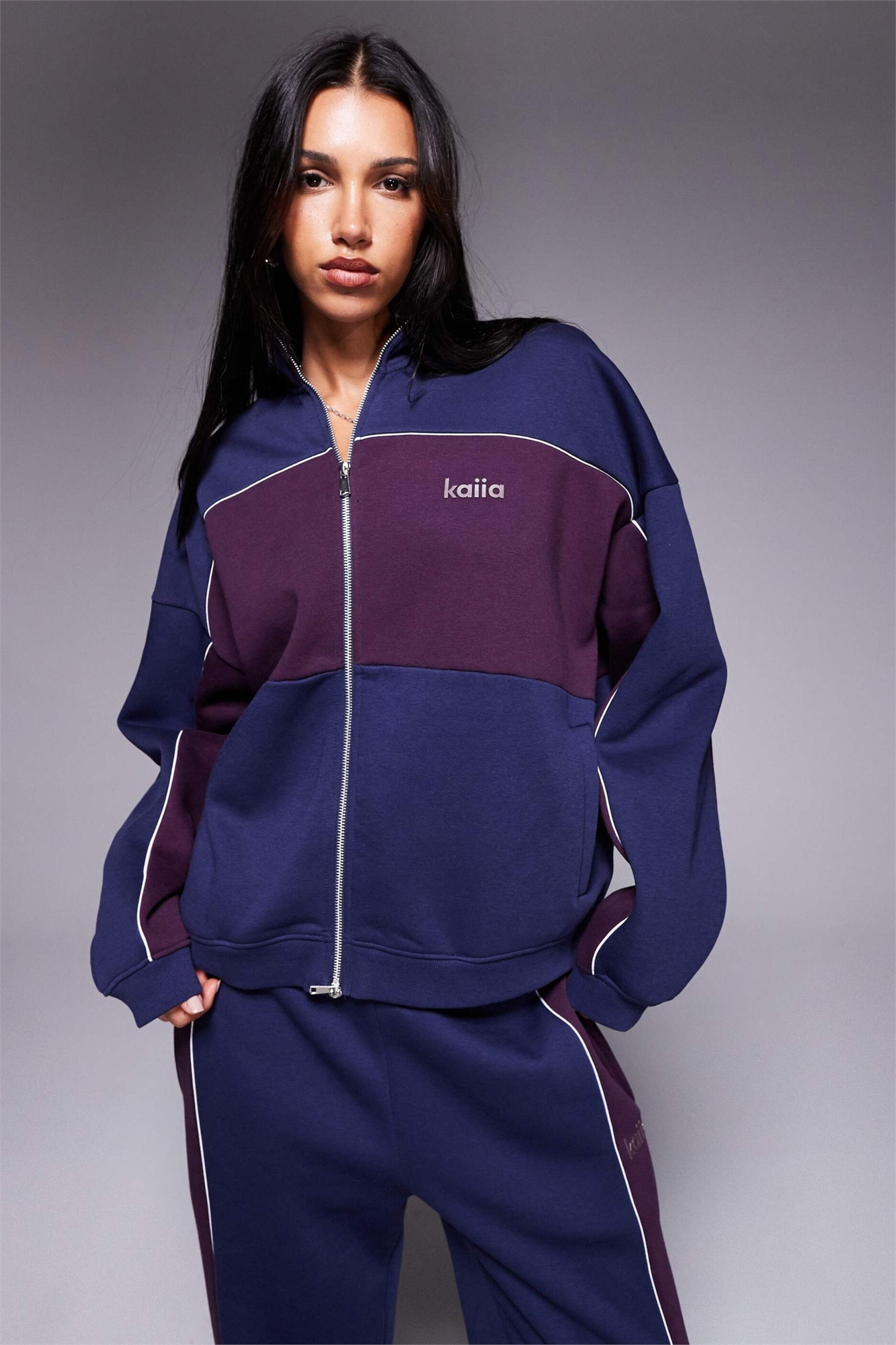 Свитшот свободного кроя с контрастными полосками и застежкой-молнией, с преобладанием хлопка co-ord