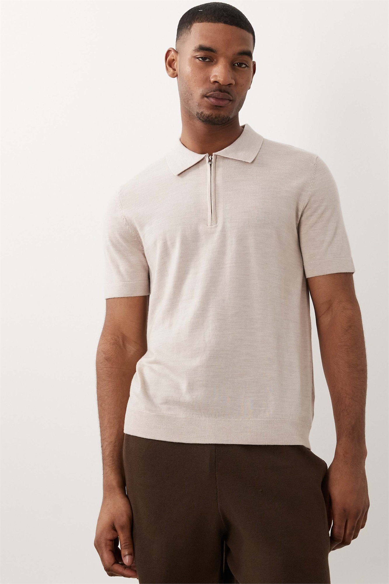Трикотажное поло с полузастежкой-молнией из 100% шерсти