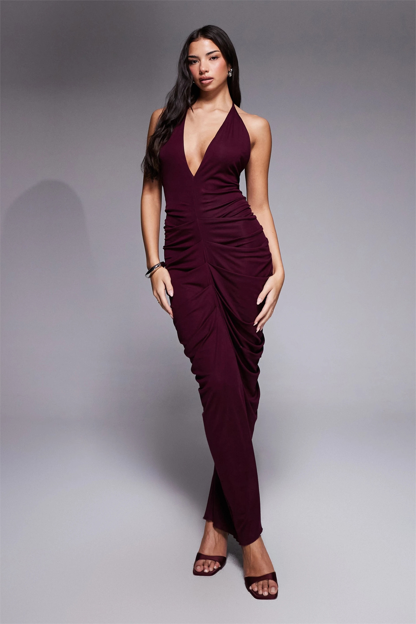 Макси-платье Sashi с глубоким вырезом, открытой спиной и рюшами