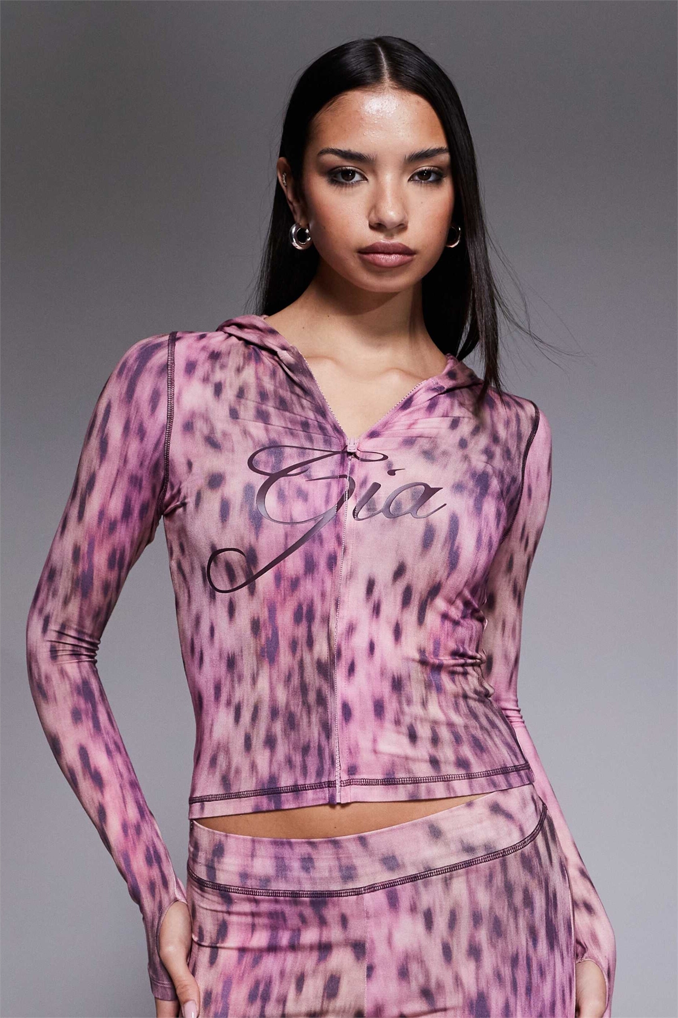 Худи с капюшоном на молнии и контрастной строчкой с логотипом Blare co-ord