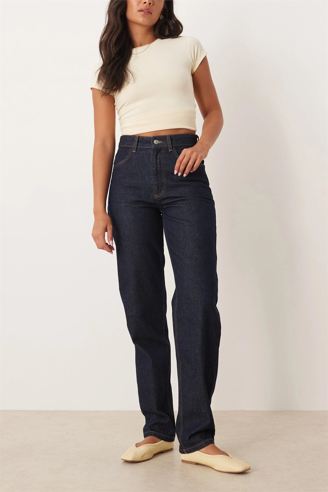 Джинсы средней посадки с зауженными прямыми брючинами и эластичной тканью для комфорта