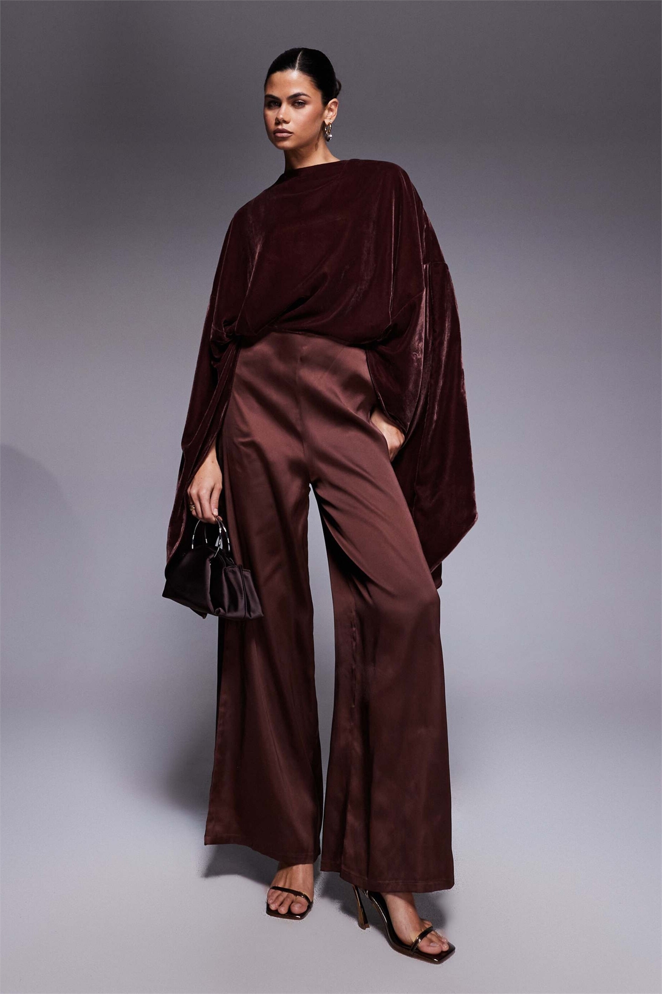 Комбинезон с бархатным лифом и широкими штанинами из атласа