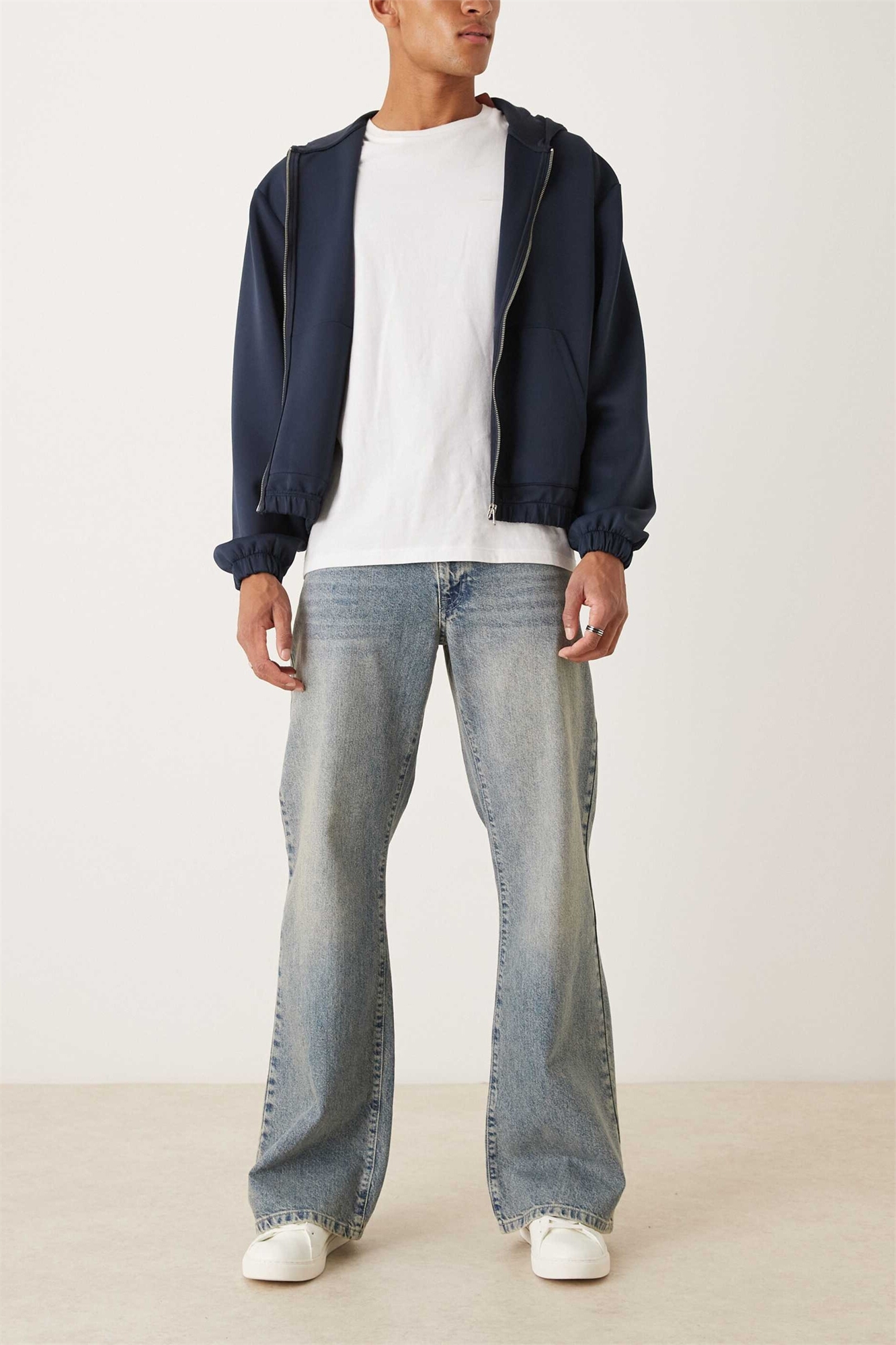 Неэластичный деним: светло-голубой оттенок Основной материал: 100% хлопок.