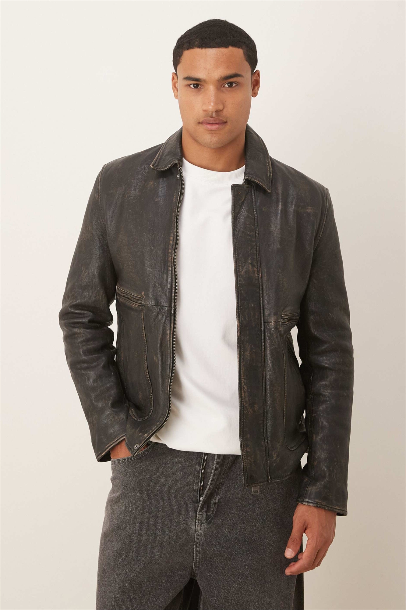 Куртка Харрингтон из натуральной кожи с эффектом «вымытого»