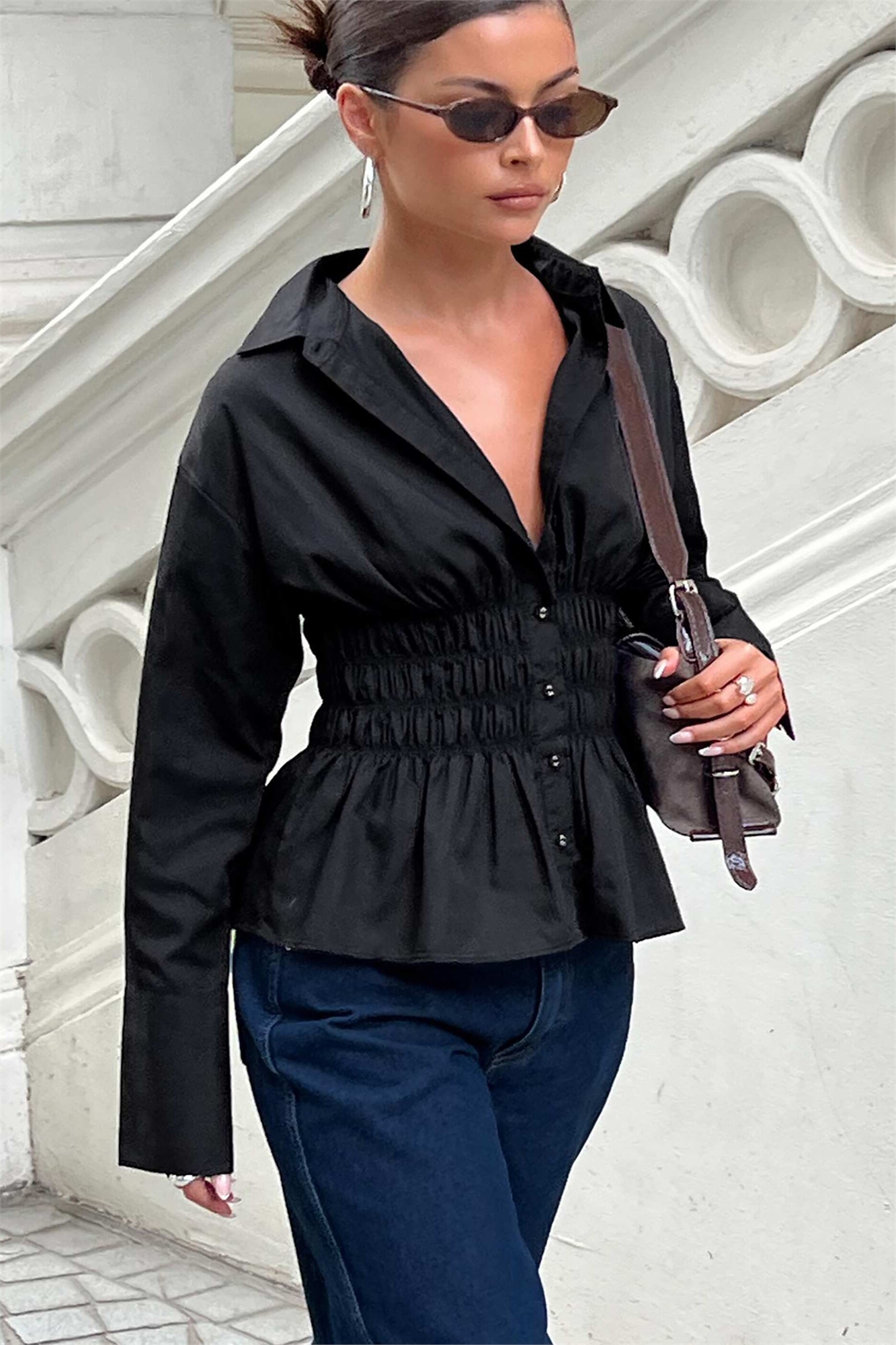Рубашка с застежкой на пуговицах и сборками на талии