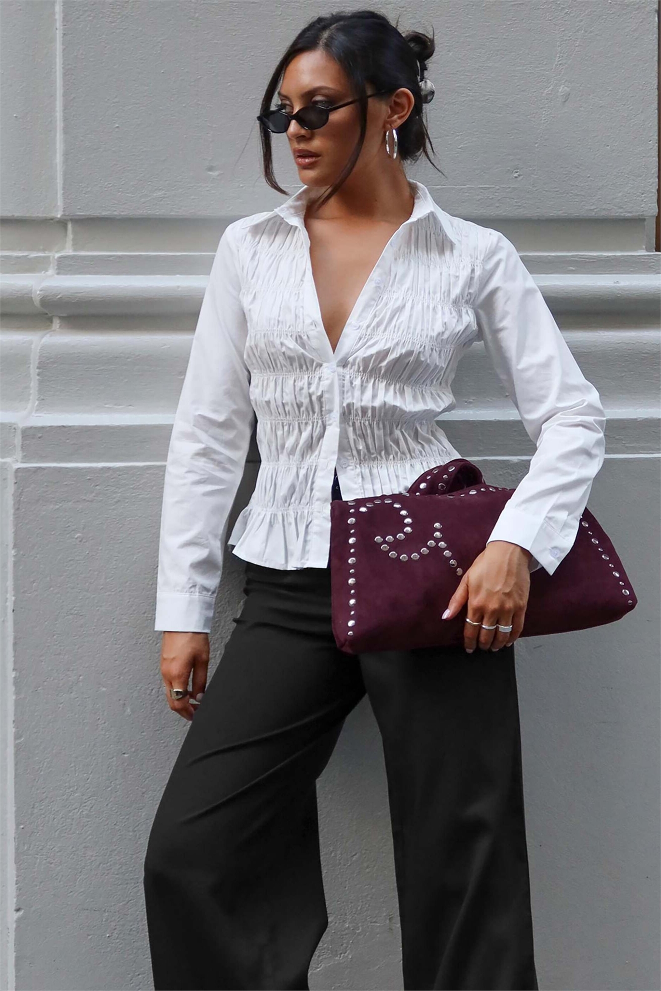 Рубашка с длинными рукавами и сборчатым лифом из хлопка, стиль 90-х