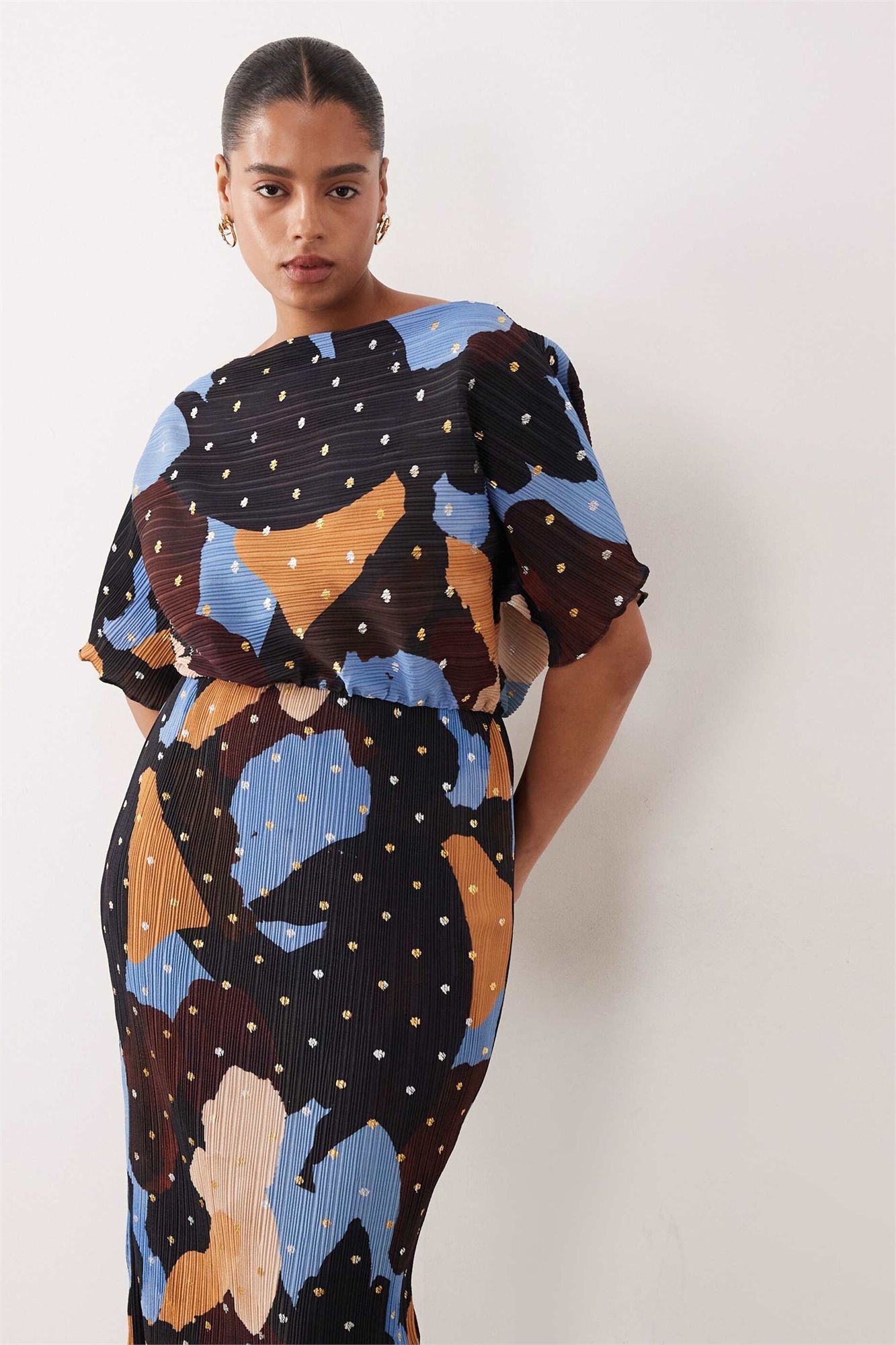 Асимметричное макси-платье Tilly с плиссировкой и золотой фольгой
