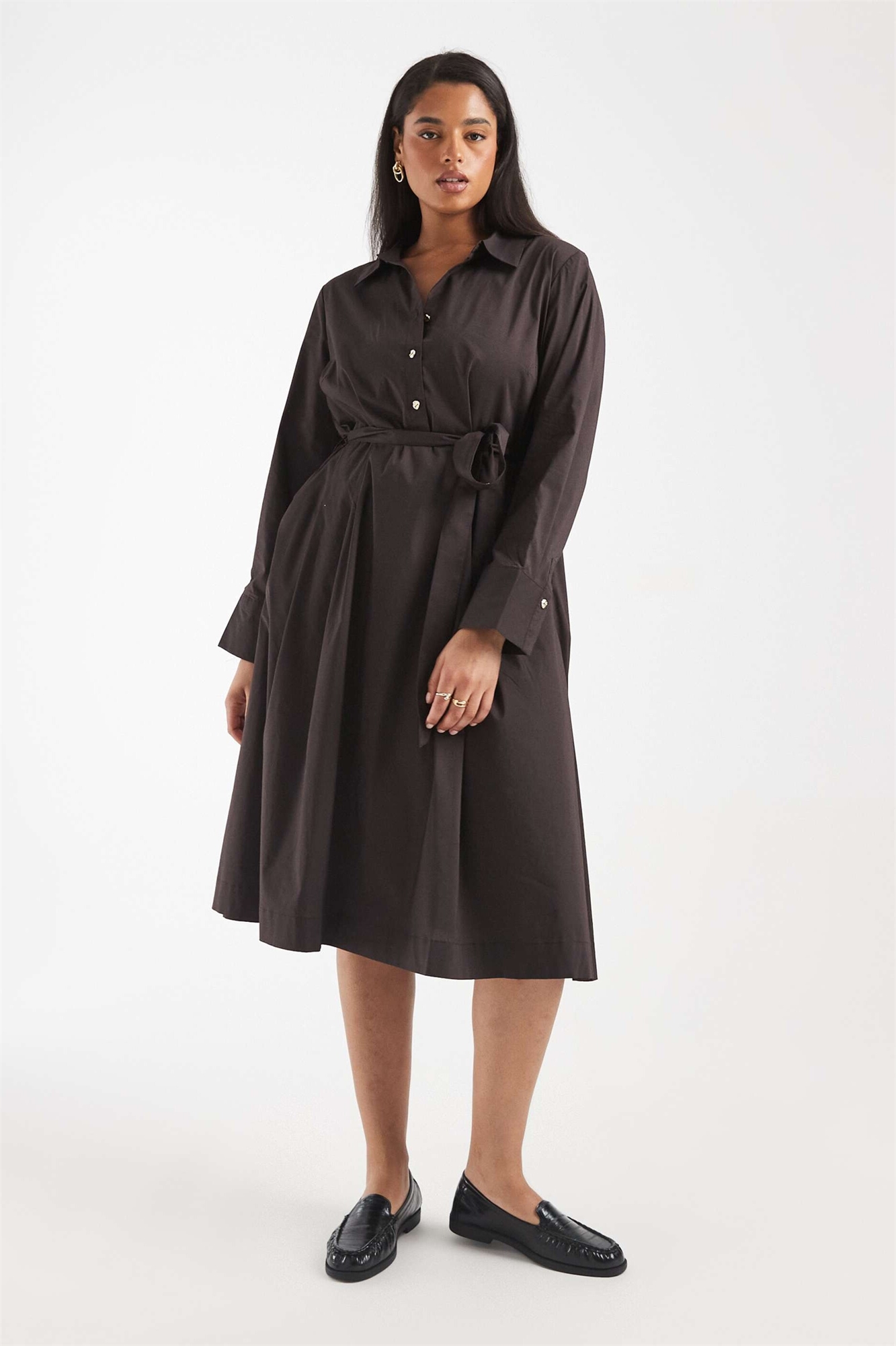 Платье-рубашка средней длины из поплина с поясом