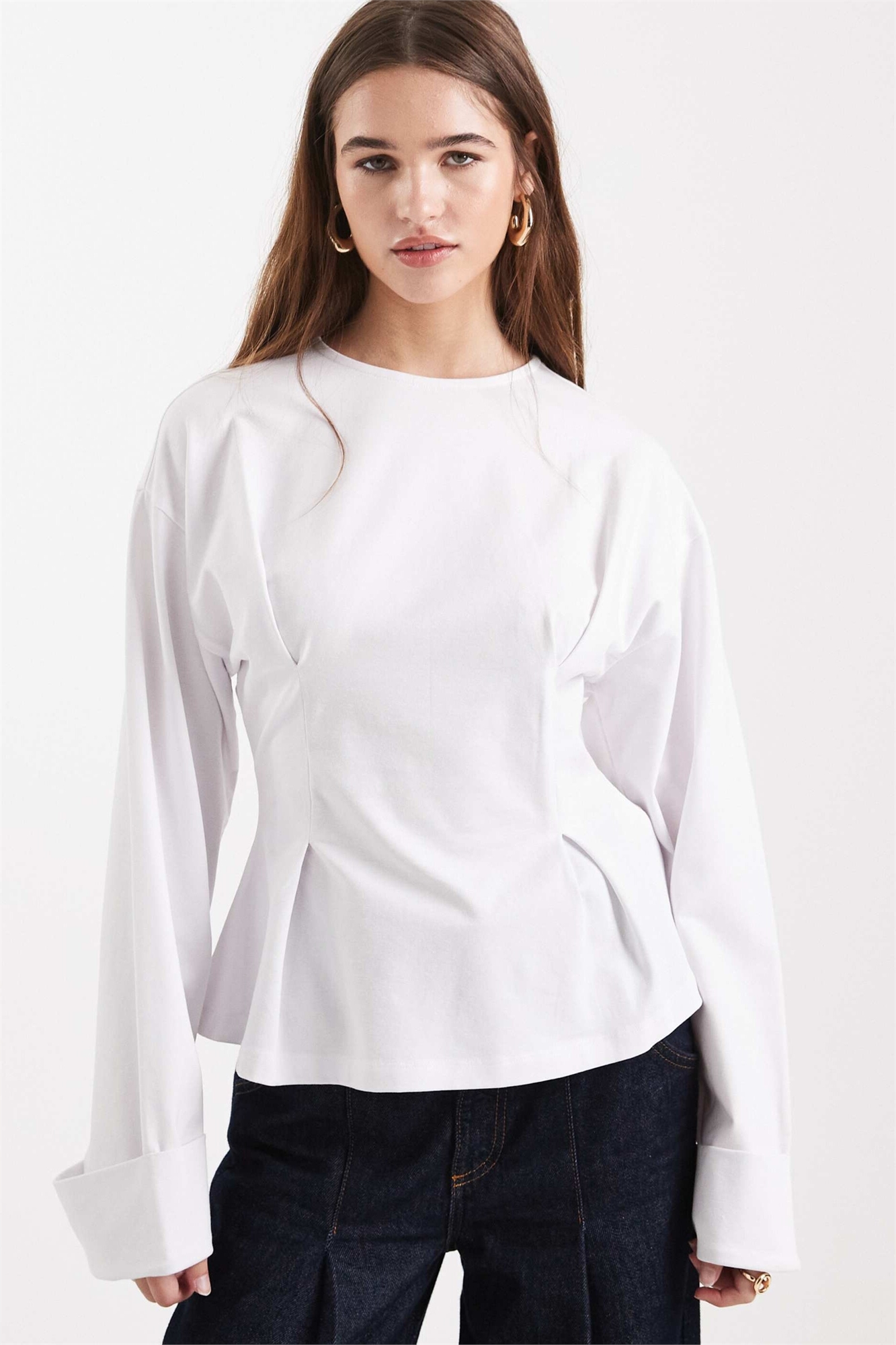 Футболка с зауженной талией, широкими манжетами и длинными рукавами