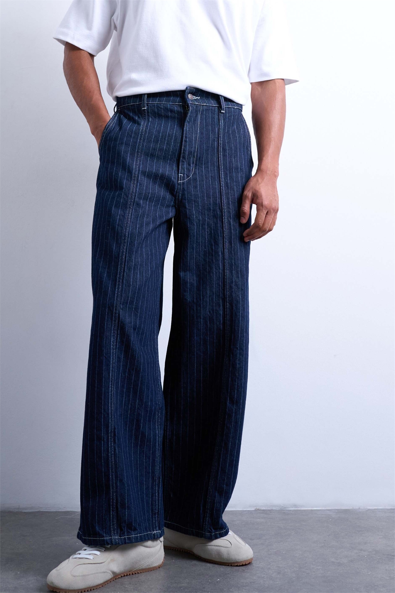 Джинсы с широкими брючинами и швом