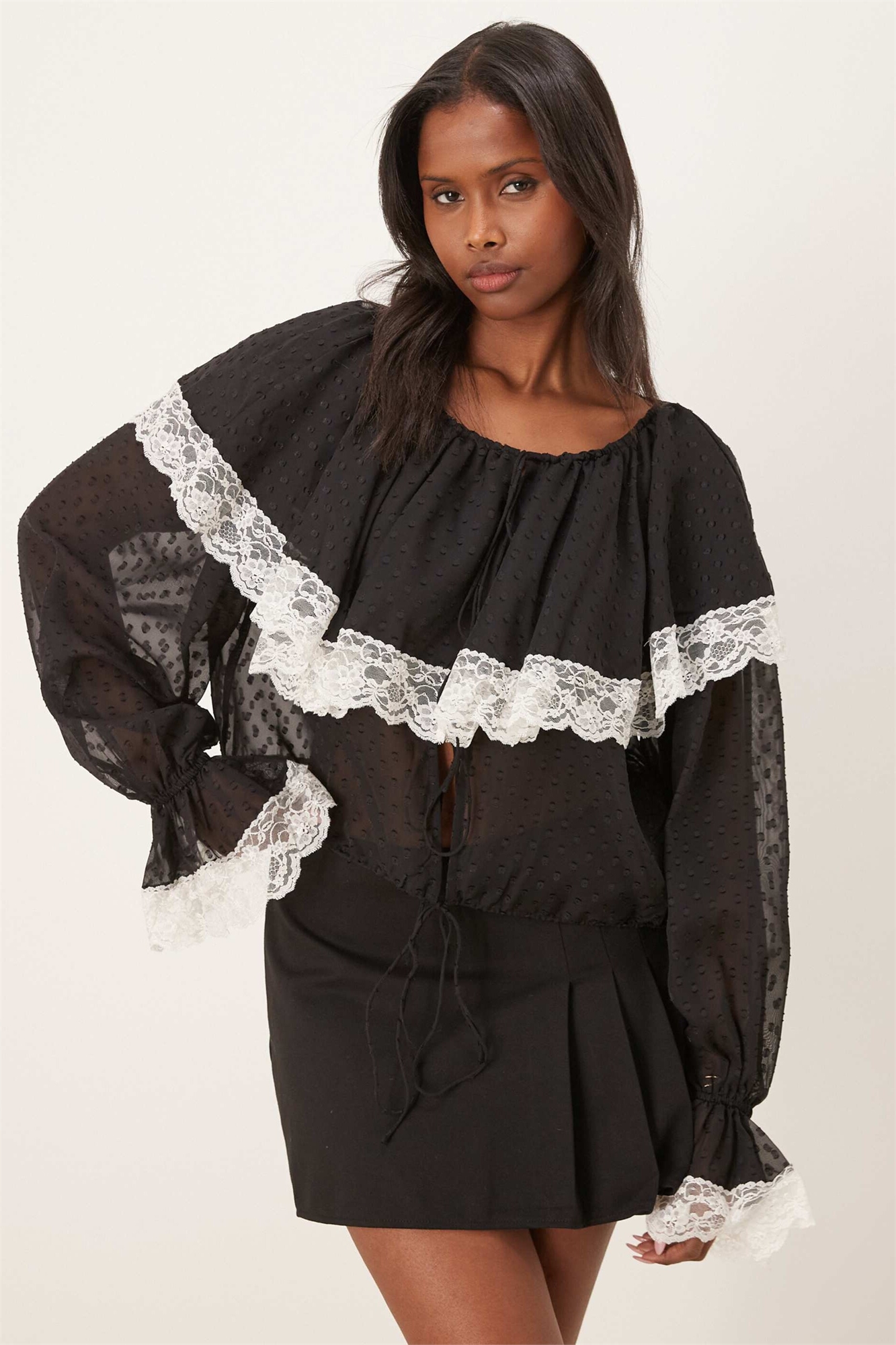 Блузка с накидкой из кружевной сетки с узором «добби»