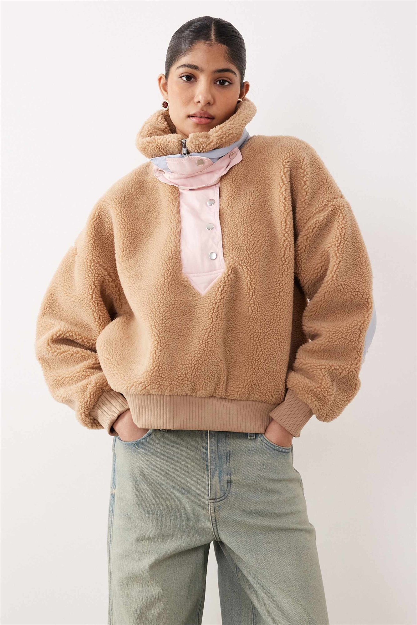 Борг: ткань типа плюшевого мишки с мягкой, неровной текстурой Основной материал: 73% полиэстер, 27% акрил.