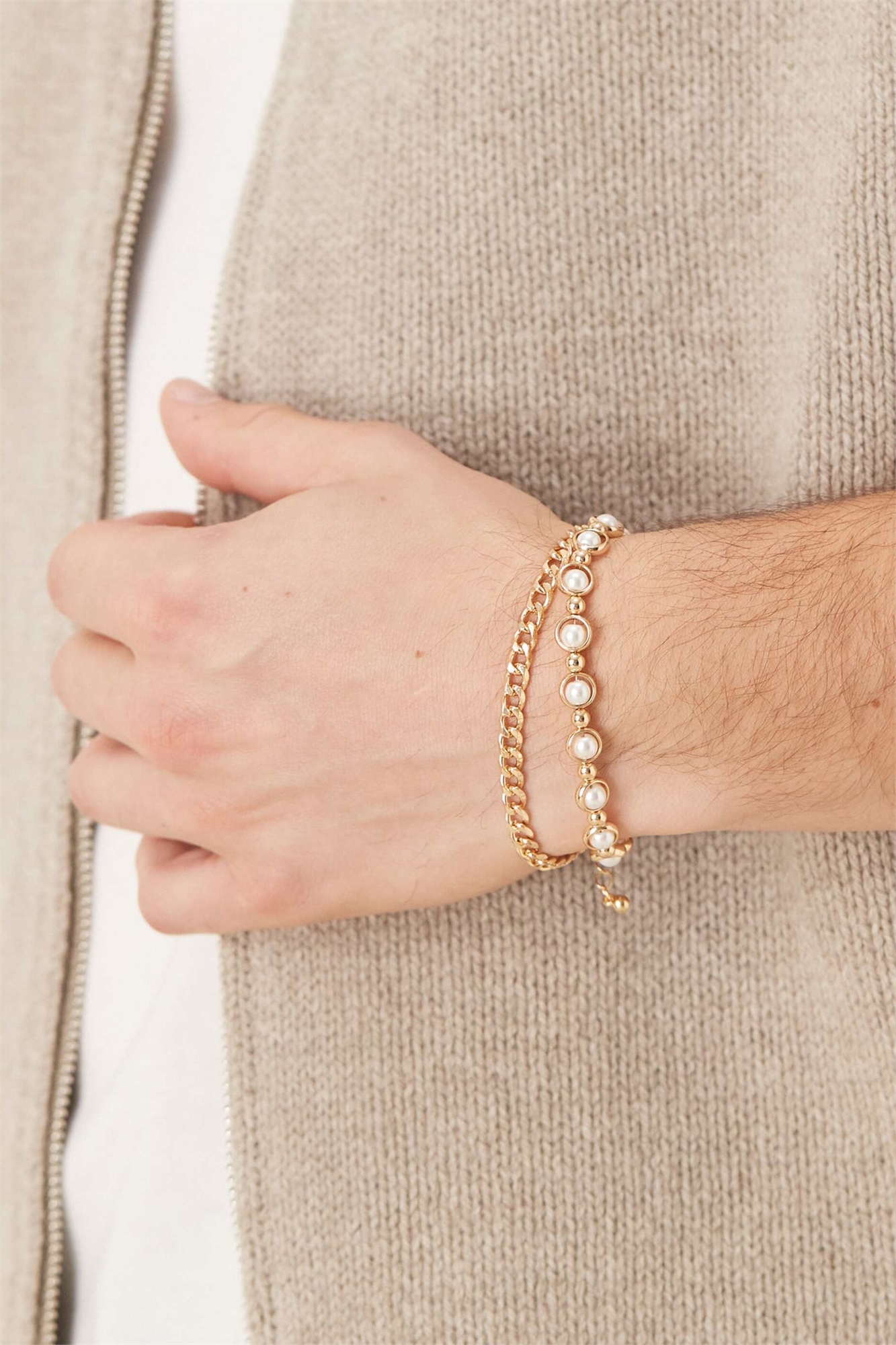 Набор из 2 браслетов с жемчужинами в оправах и цепочкой