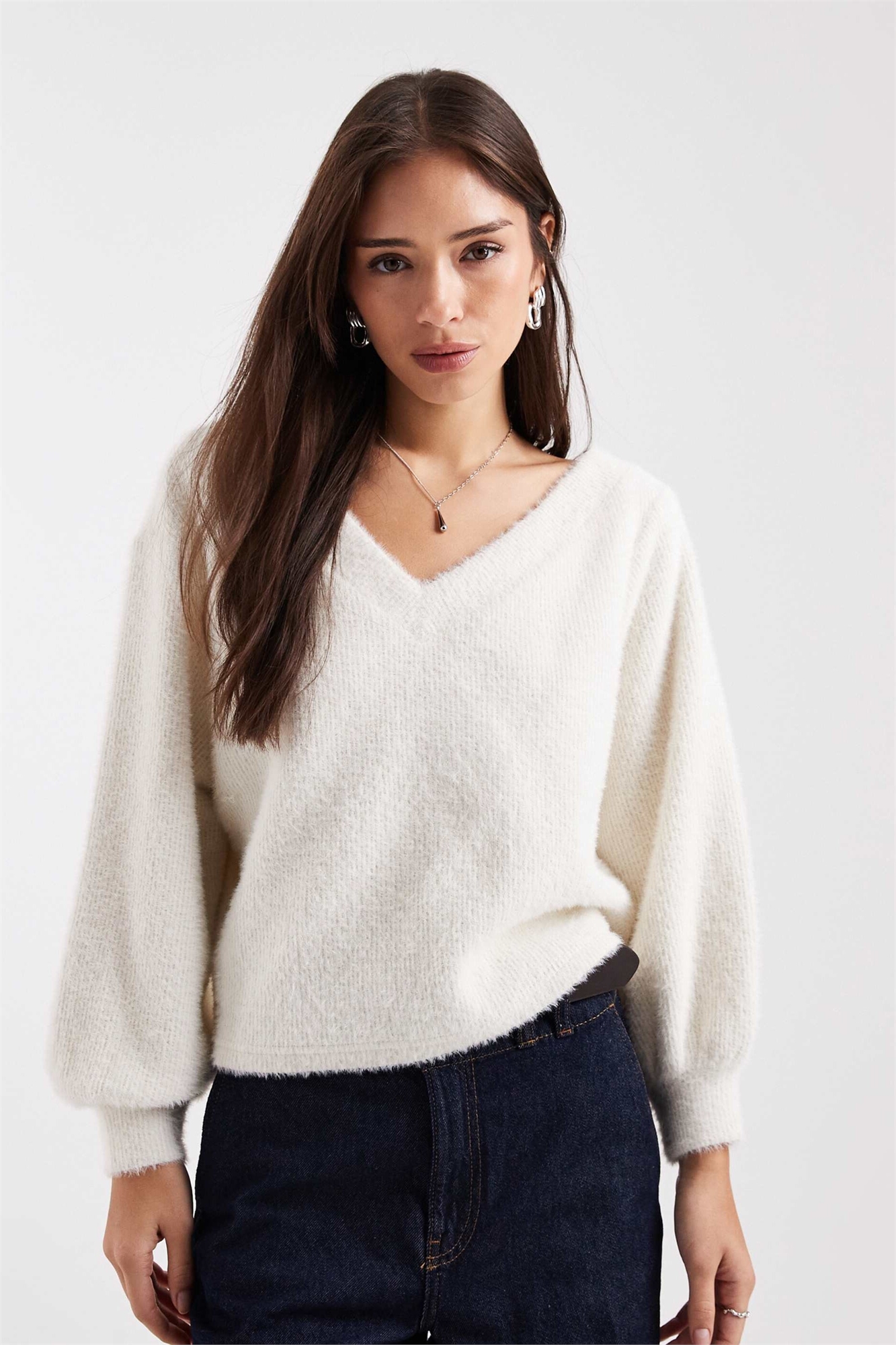Пушистая свободная кофта с открытыми плечами