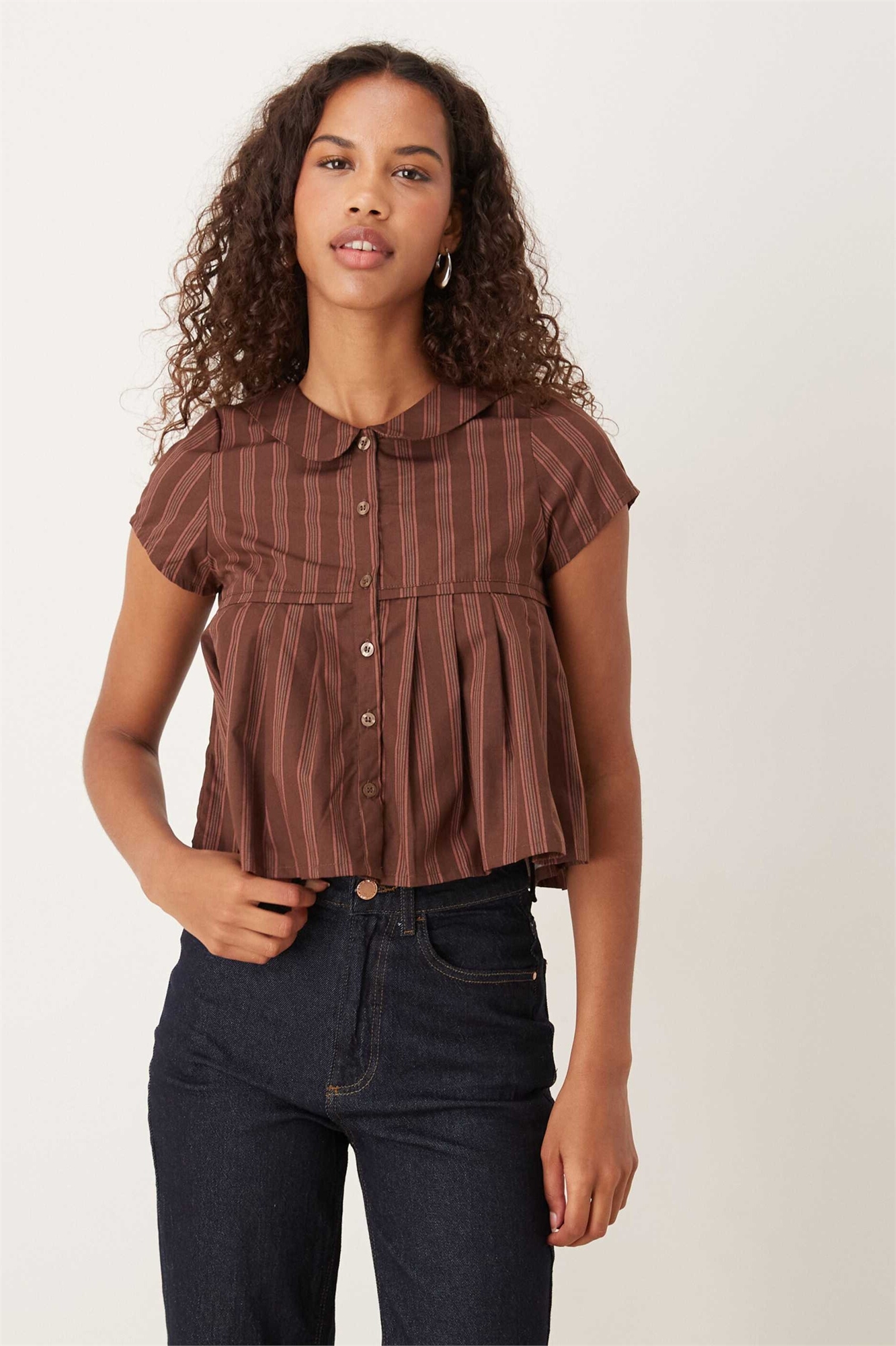 Блузка Kaelis с воротником, полосками и рукавами в складку