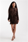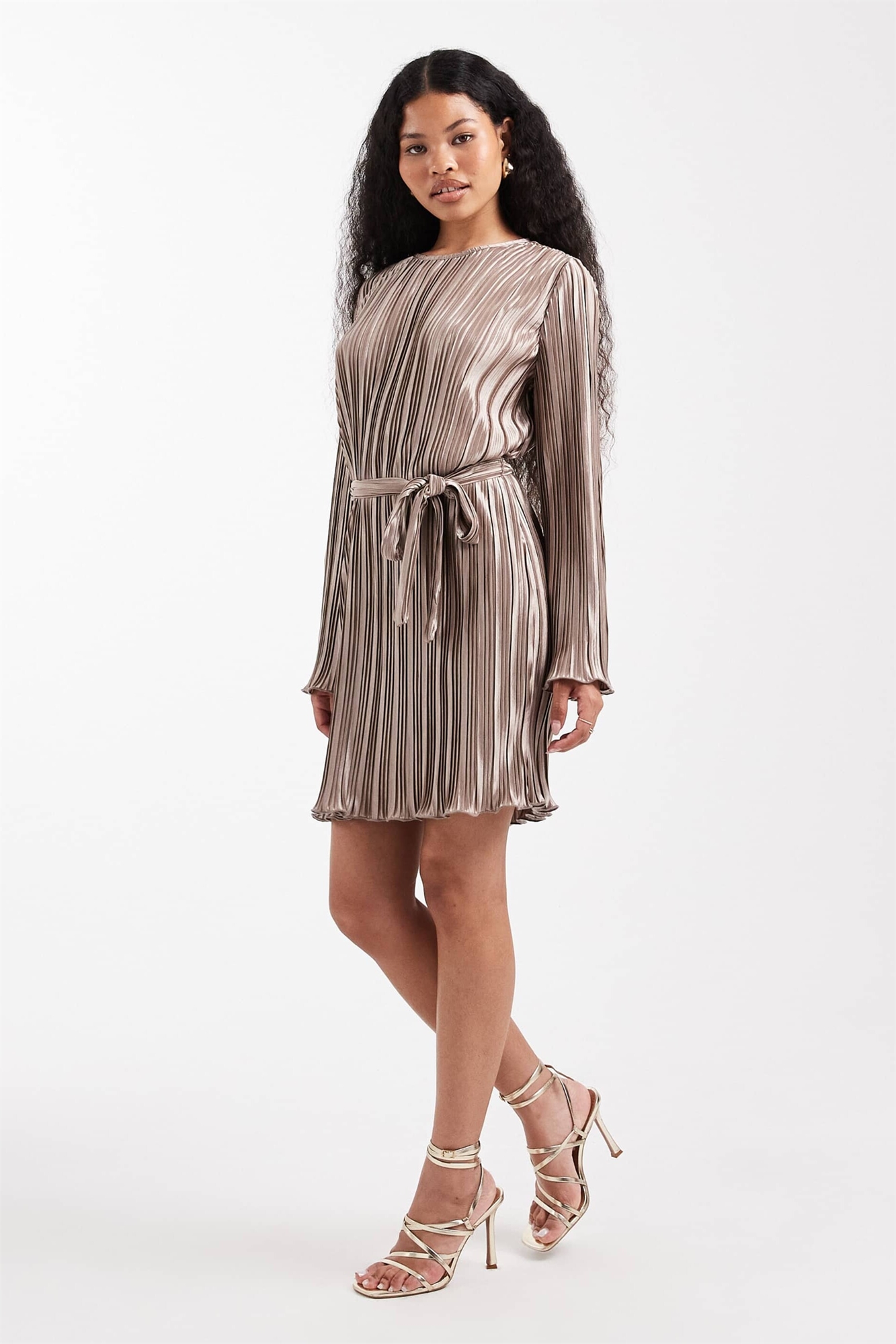 Мини-платье с плиссировкой и завязкой на талии