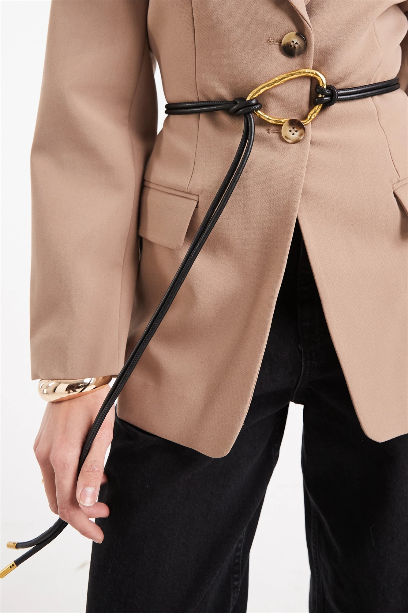 Узкий пояс из искусственной кожи с завязками и декором из кованого металла