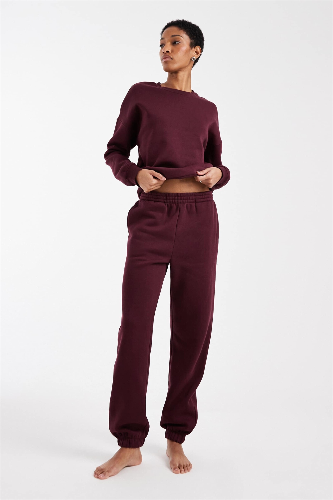 Комплект из джоггеров с широкими манжетами бордового цвета