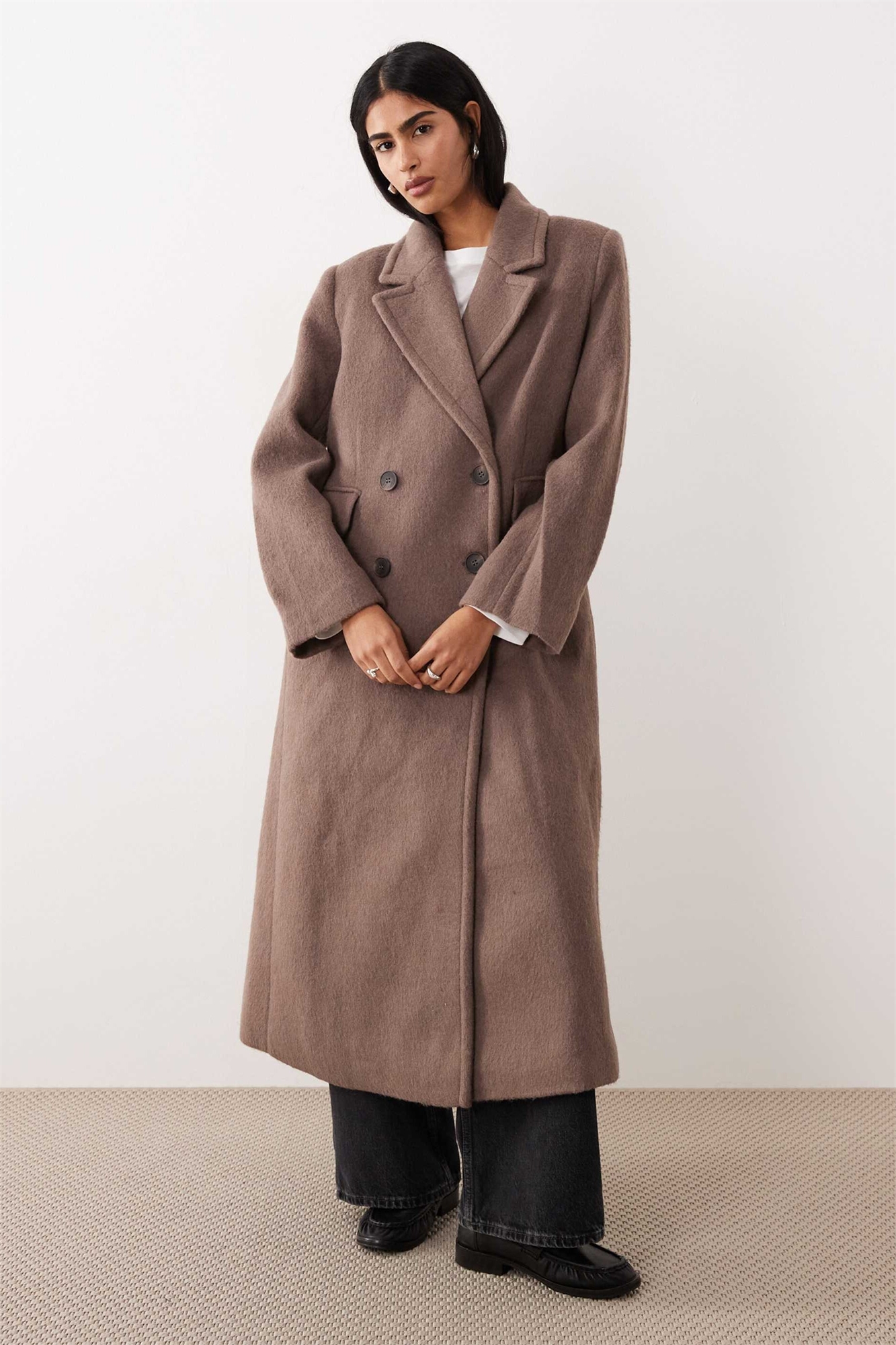 Премиум текстурированное формальное пальто макси коричневого цвета