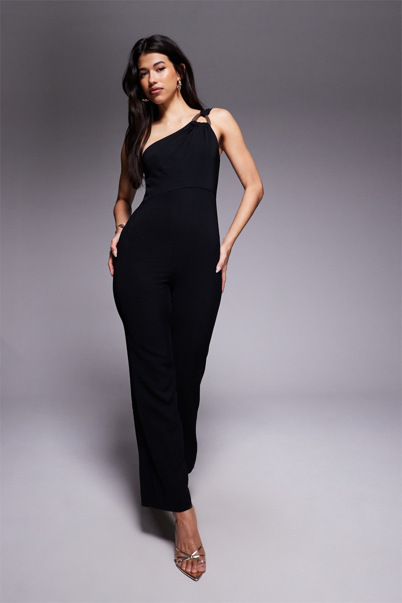 Комбинезон с металлическими элементами на одном плече