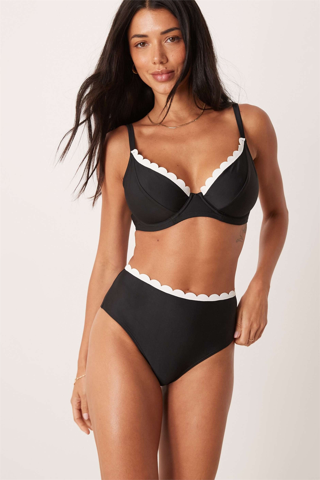 Бикини-трусики с высокой талией и контрастной волнистой каймой