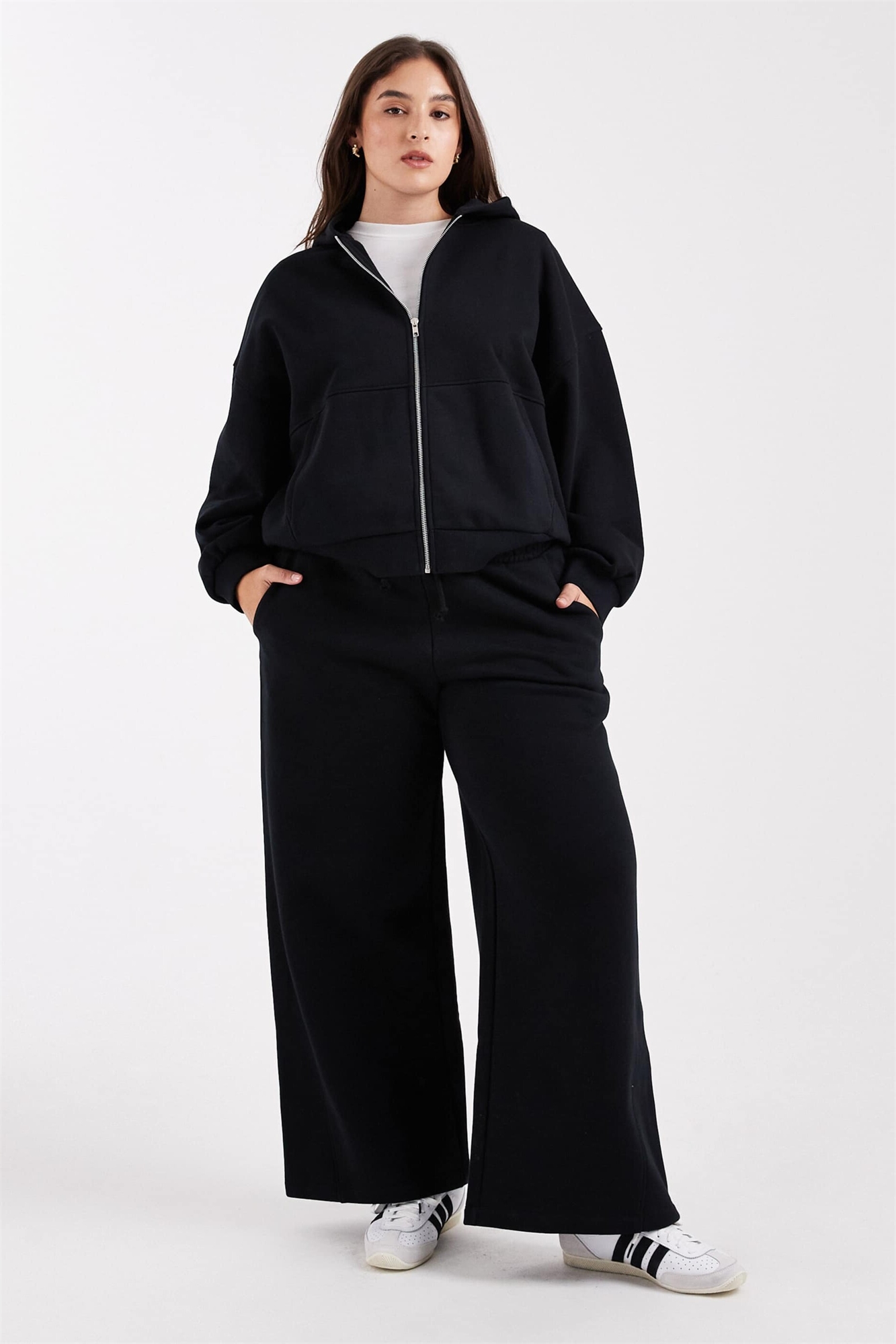 ASOS DESIGN Curve: джоггеры премиум-класса с широкими брючинами и швами, плотность ткани 500 г/м²