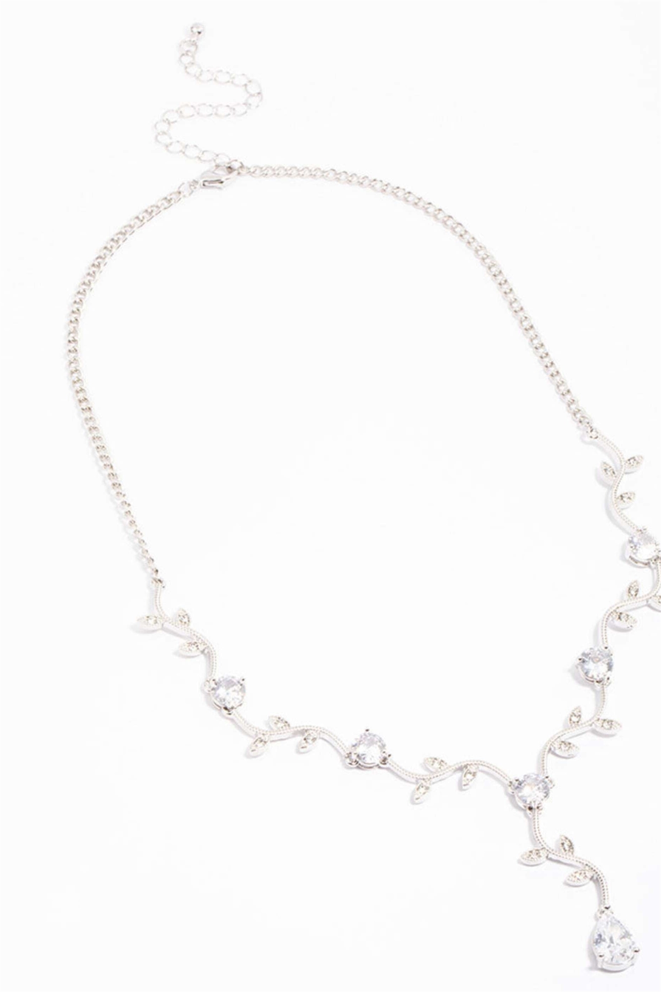 Серебряное колье в форме буквы Y с цветочными элементами из кубического циркония