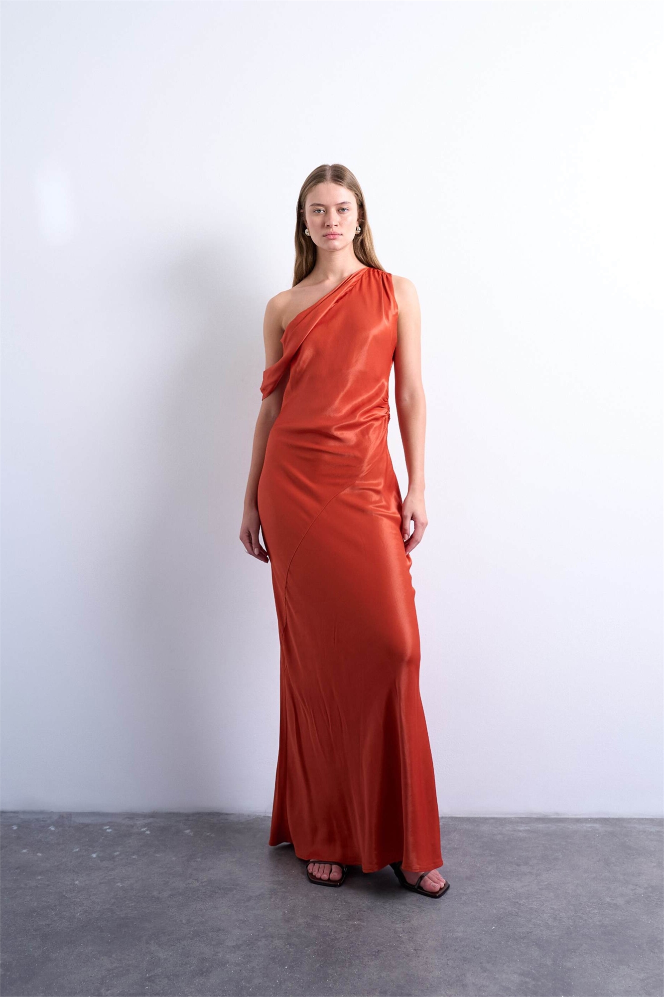Праздничное макси-платье с драпировкой на шее и открытыми плечами