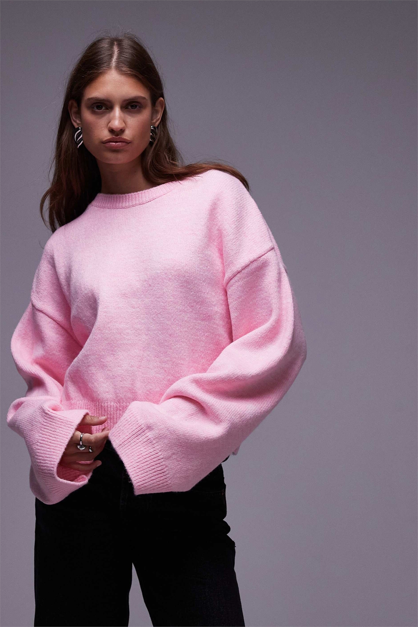Свитер из трикотажа с широкими рукавами и свободным кроем