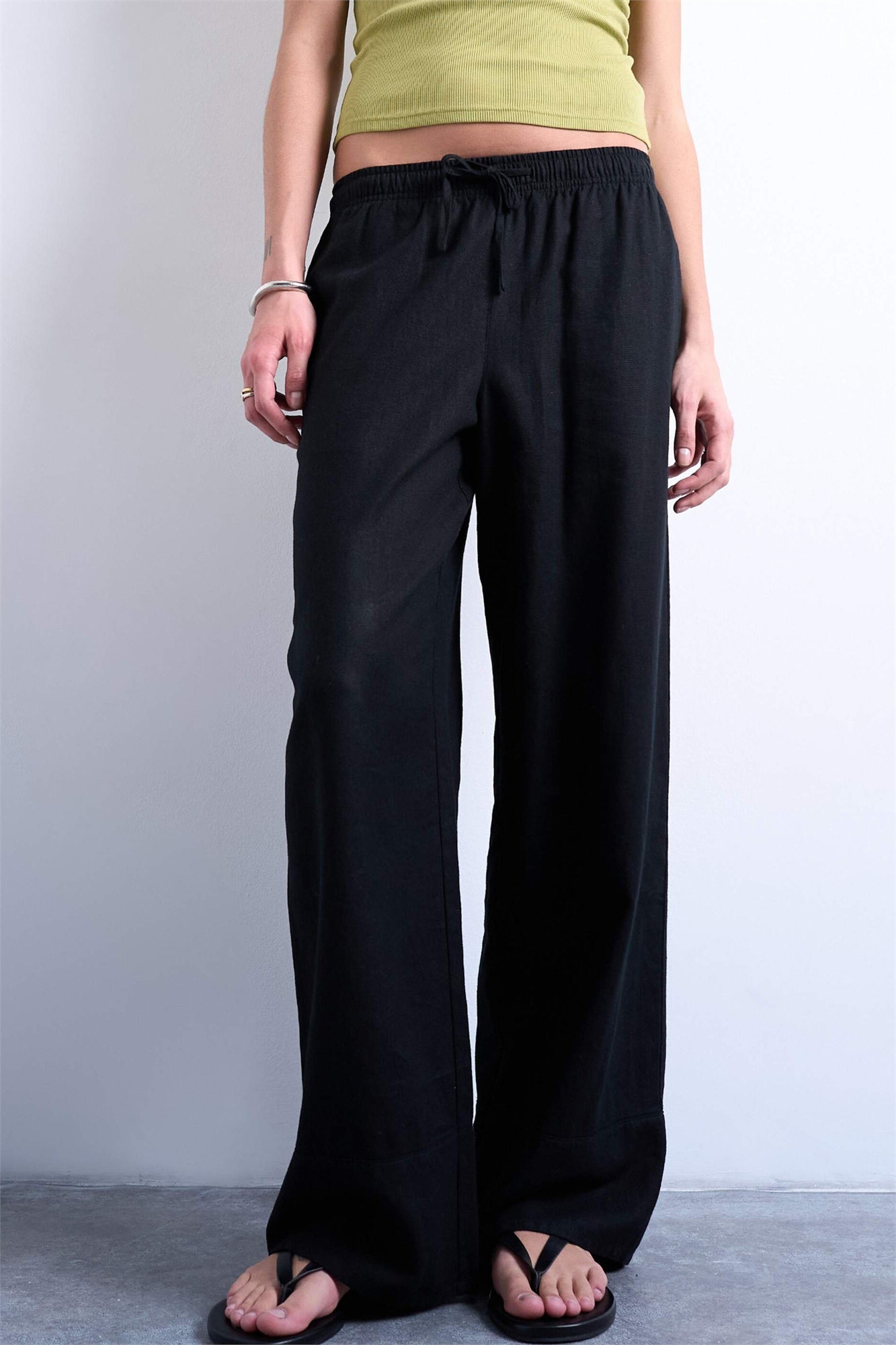 Брюки из льна с прямыми брючинами и широкими манжетами