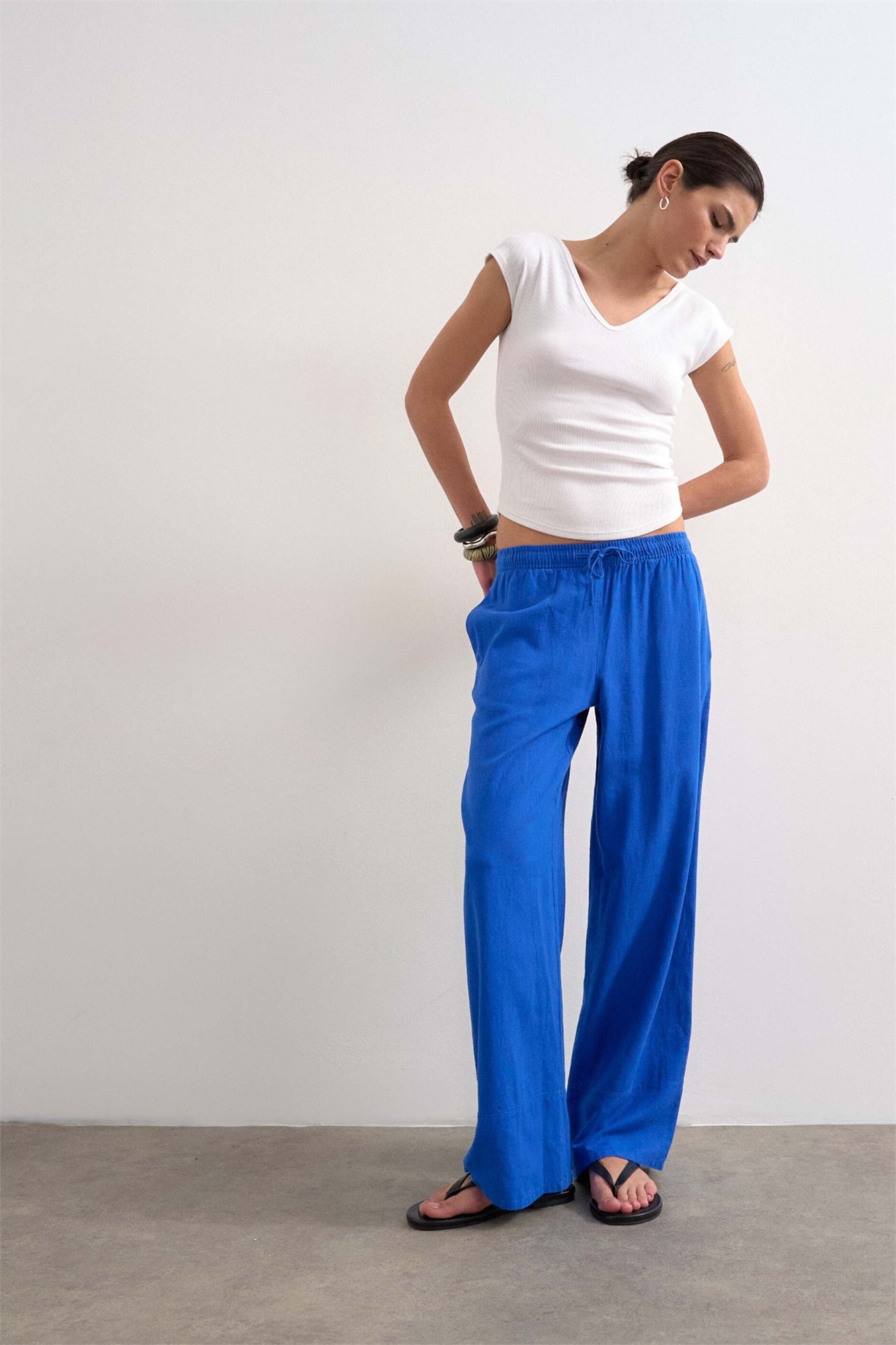 Брюки из льна с прямыми брючинами и широкими манжетами