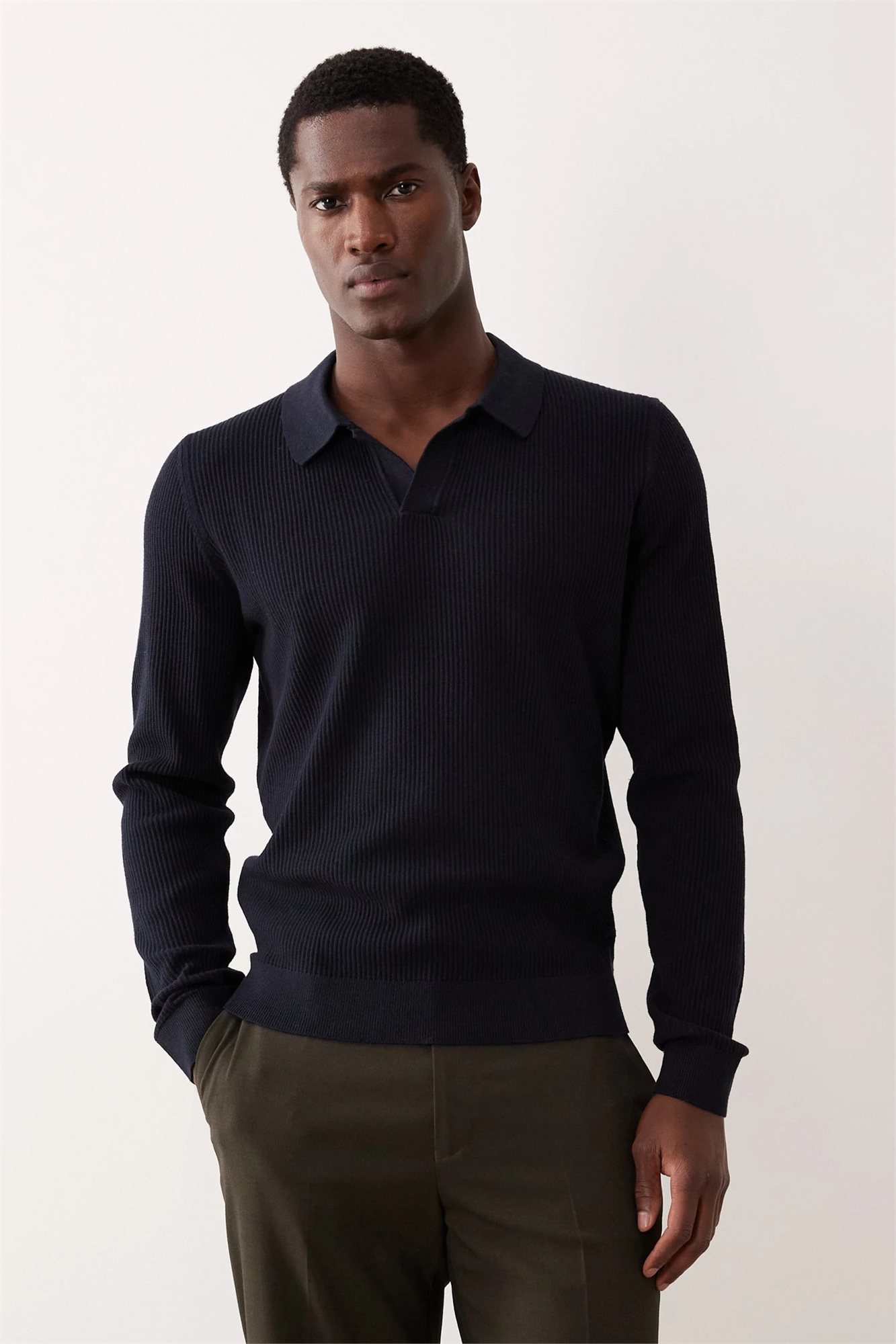 Поло из смешанной хлопковой ткани с ребристой отделкой