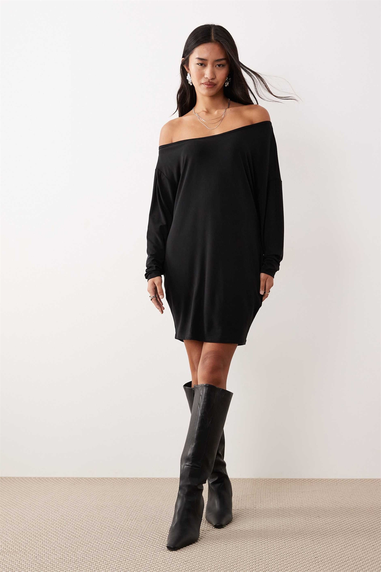 Мини-платье с открытыми плечами и свободным кроем от Shelisa