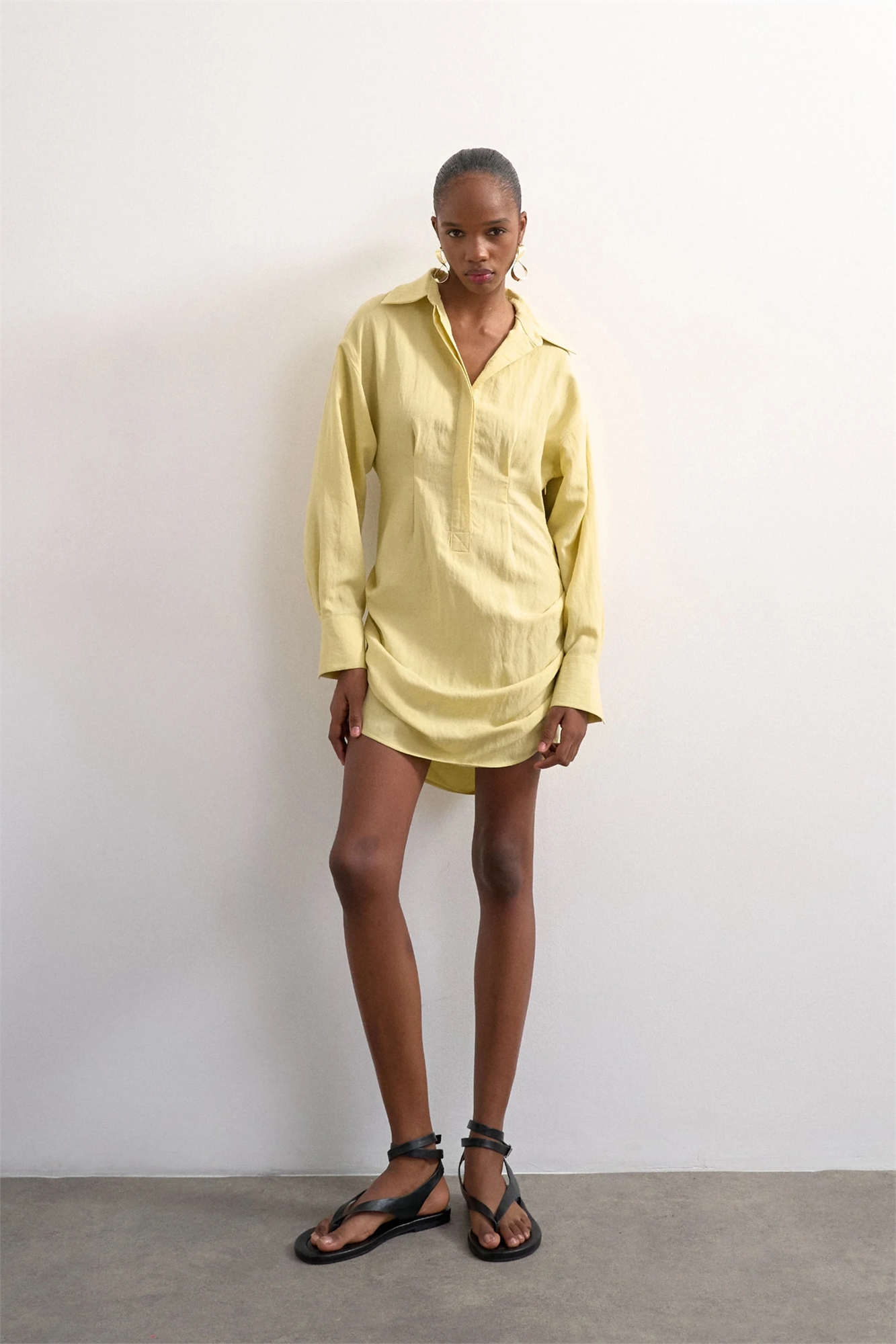 Платье-рубашка с мини-юбкой из льна со сборками