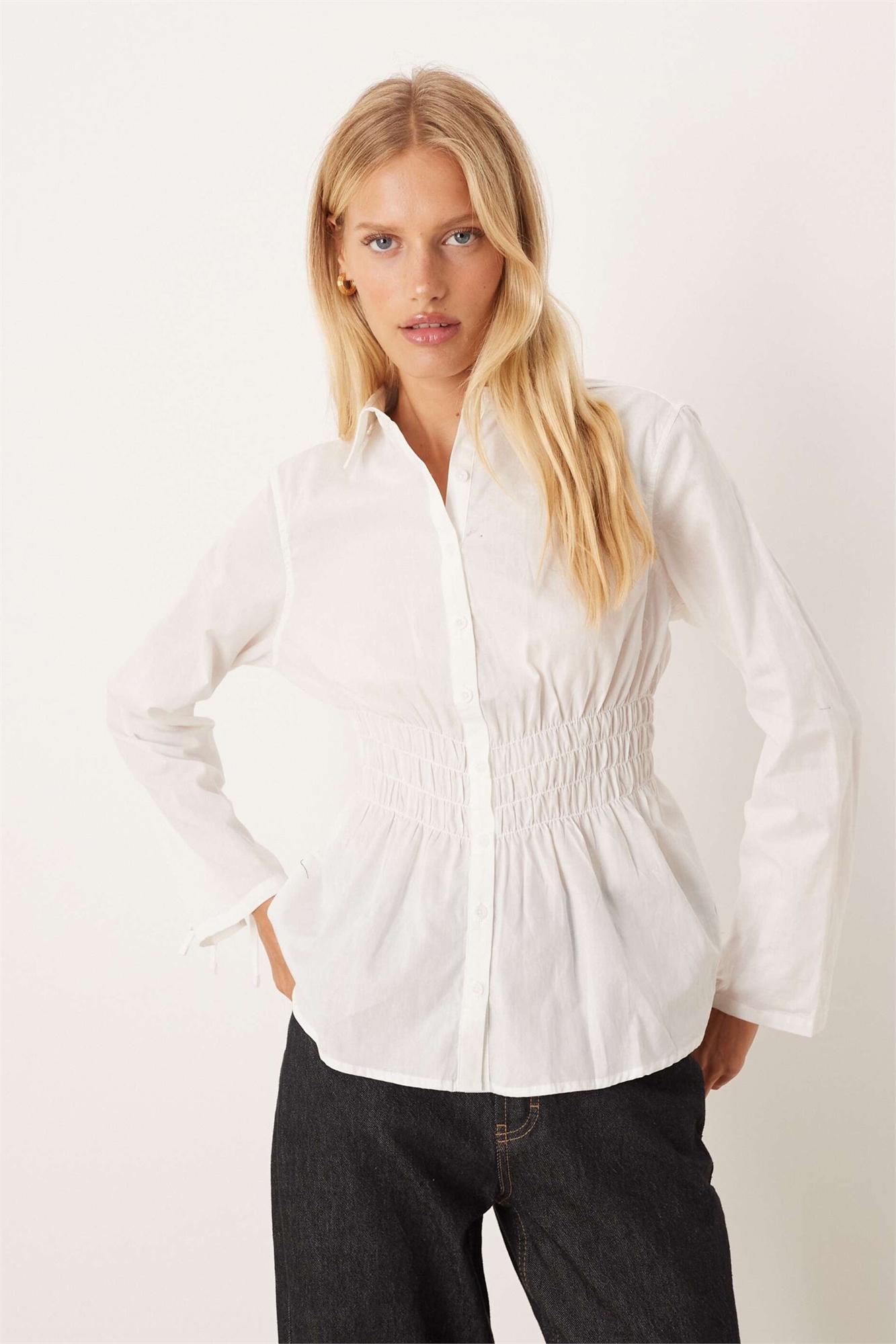 Рубашка с длинными рукавами и сборками
