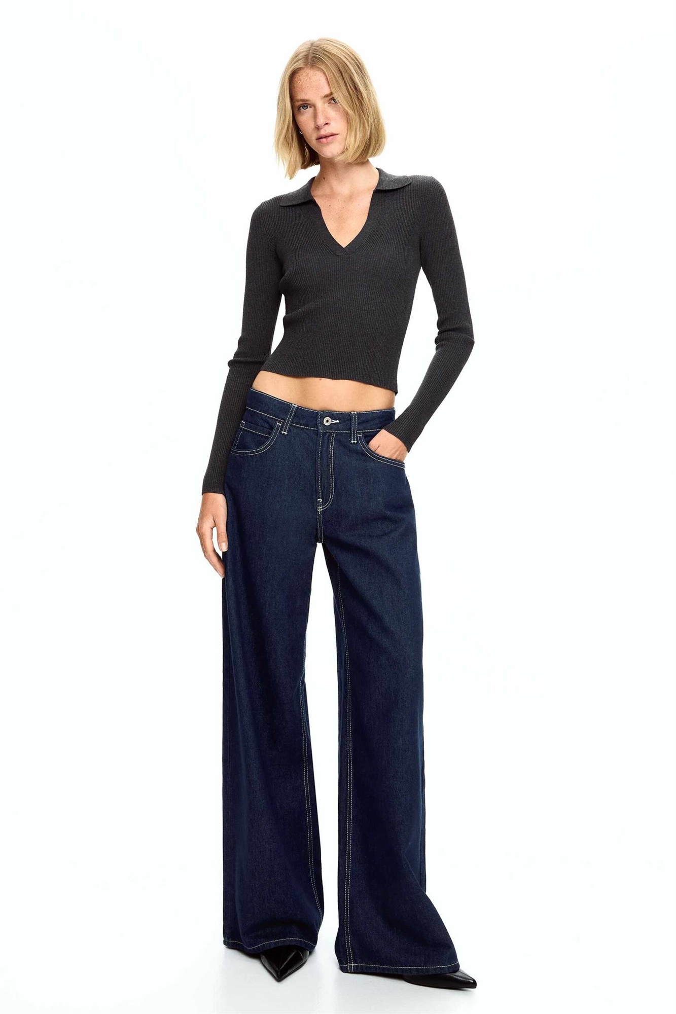 Неэластичный деним: темно-синий цвет Основной материал: 100% хлопок.