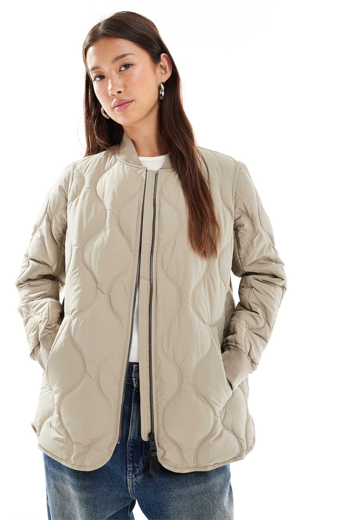 Короткая стеганая куртка-подкладка зимнего цвета «бежевый»