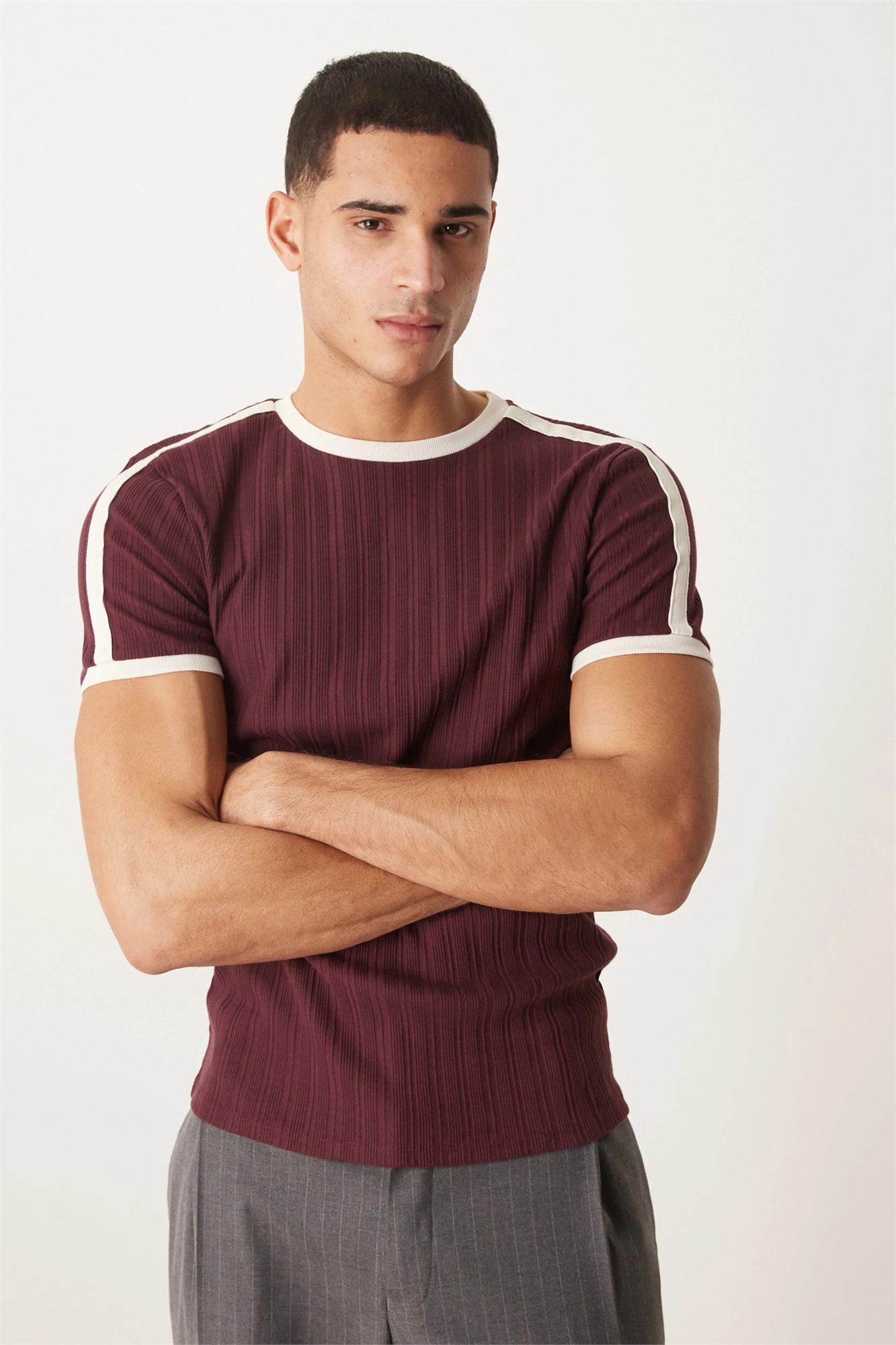 Футболка с круглым вырезом и облегающим кроем, с контрастной вставкой