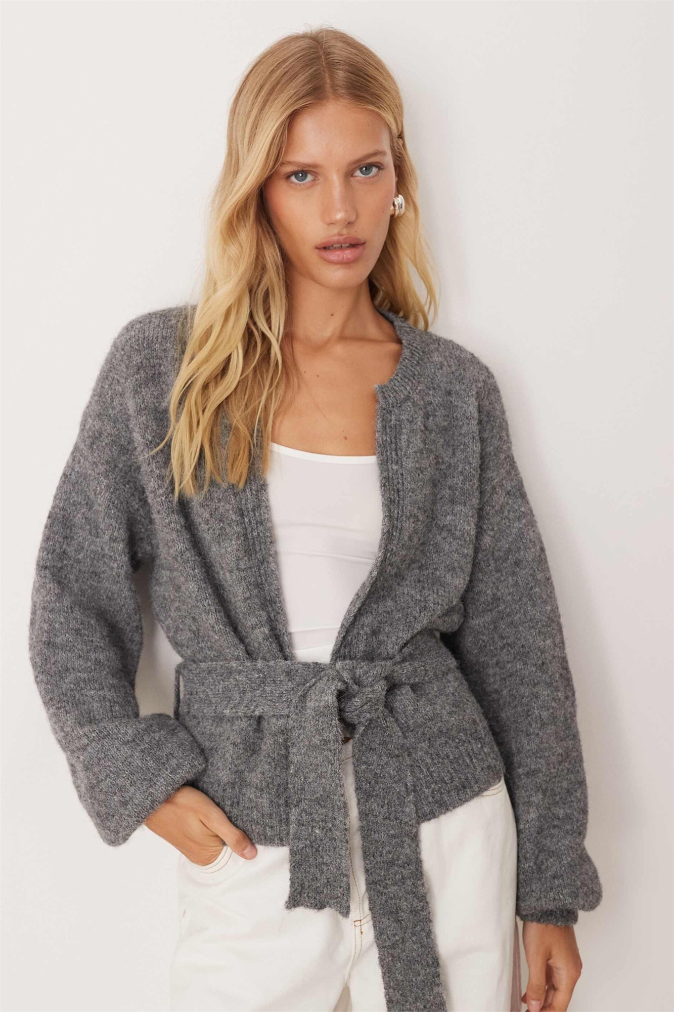 Вязаный кардиган свободного кроя с завязкой на талии из шерсти
